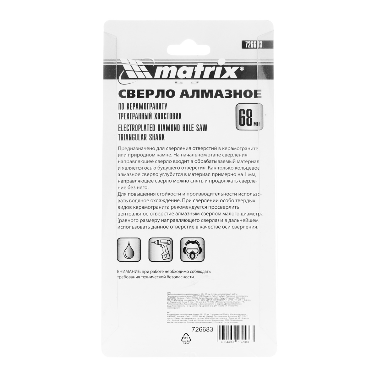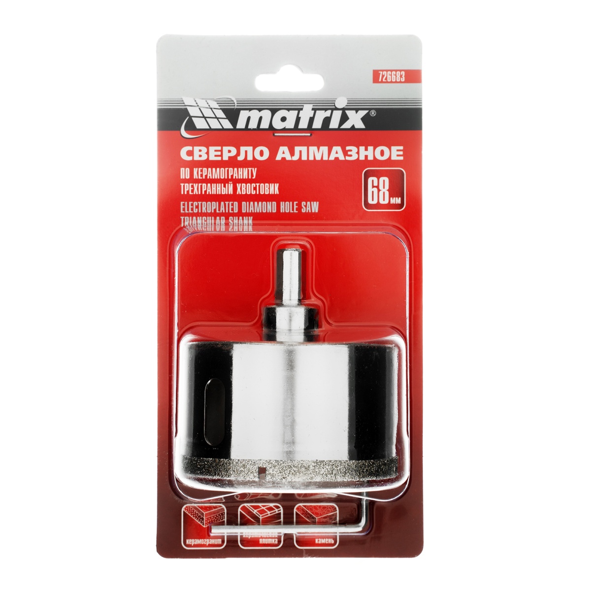 Купить Сверло алмазное по керамограниту, 68 х 67 мм, трехгранный хвостовик Matrix V6223 по лучшей цене с доставкой - интернет магазин №1 в России