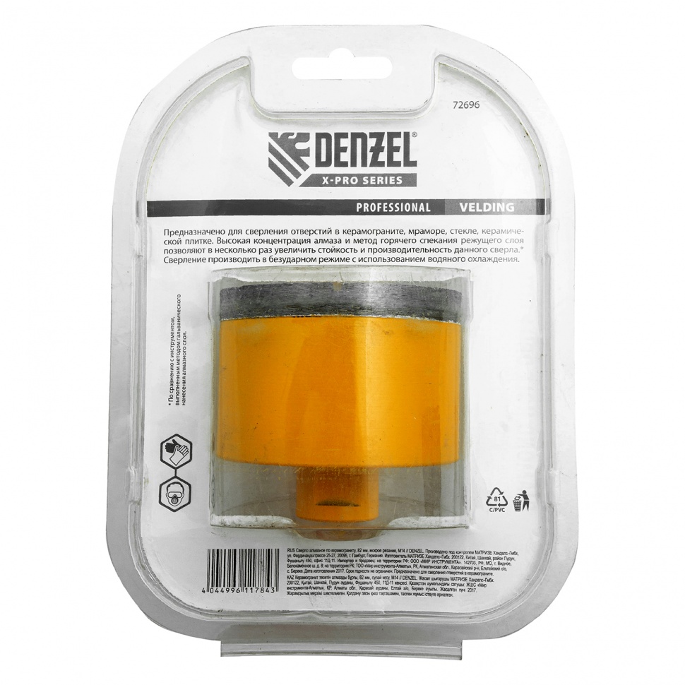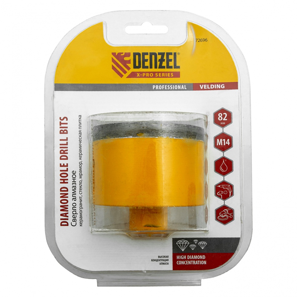 Сверло алмазное по керамограниту, 82 мм, мокрая резка, М14 Denzel
