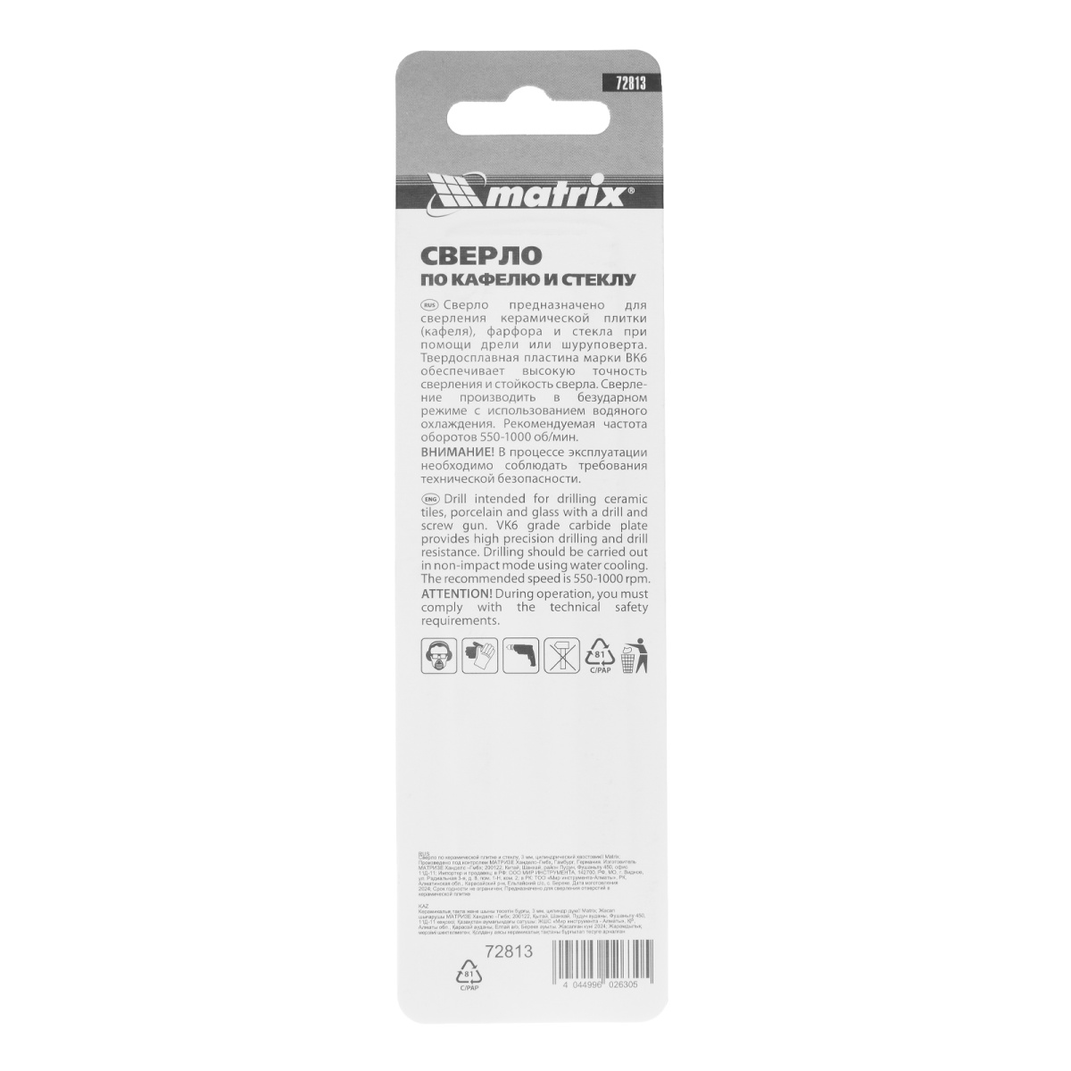 Купить Сверло по керамической плитке, 3 мм, цилиндрический хвостовик Matrix V6367 по лучшей цене с доставкой - интернет магазин №1 в России