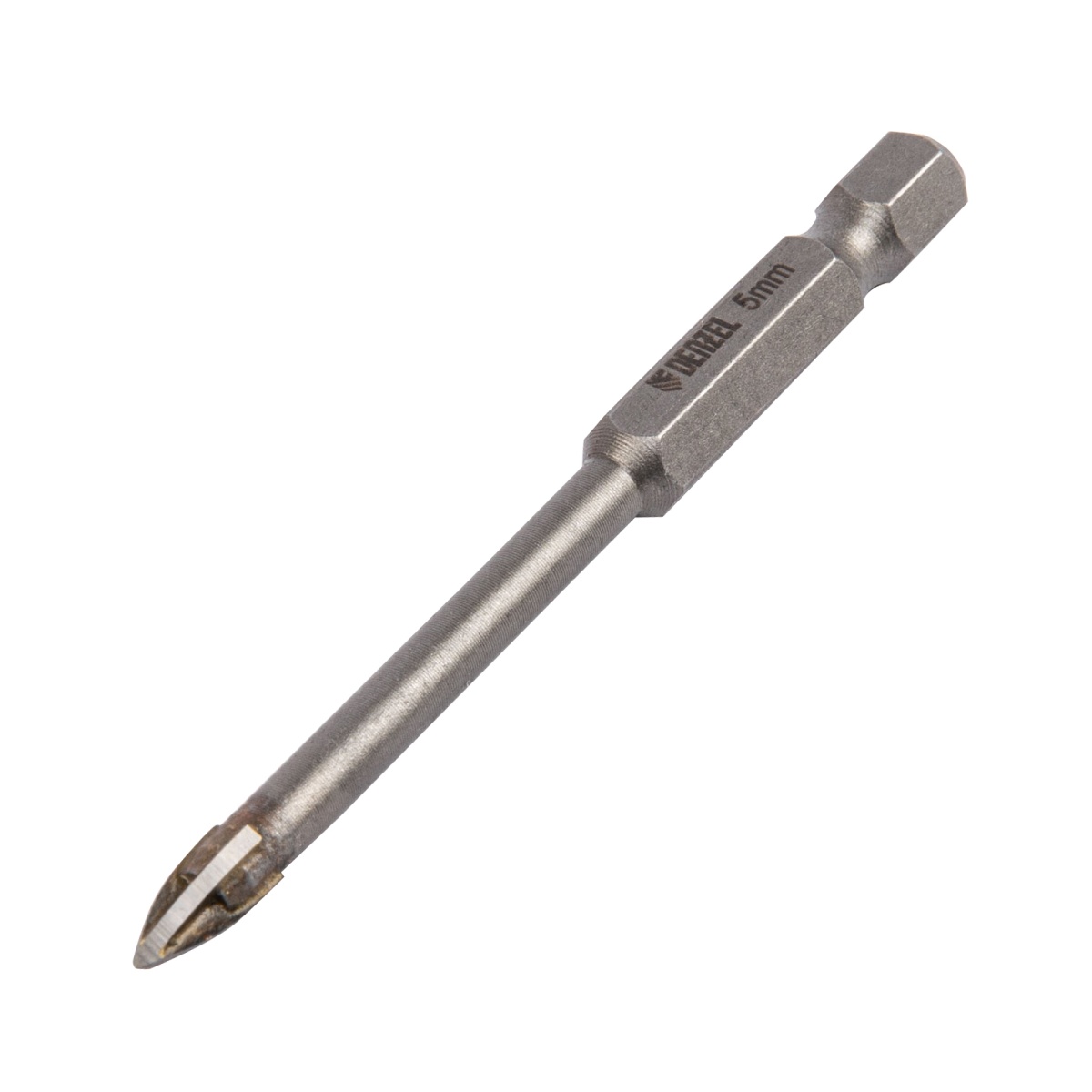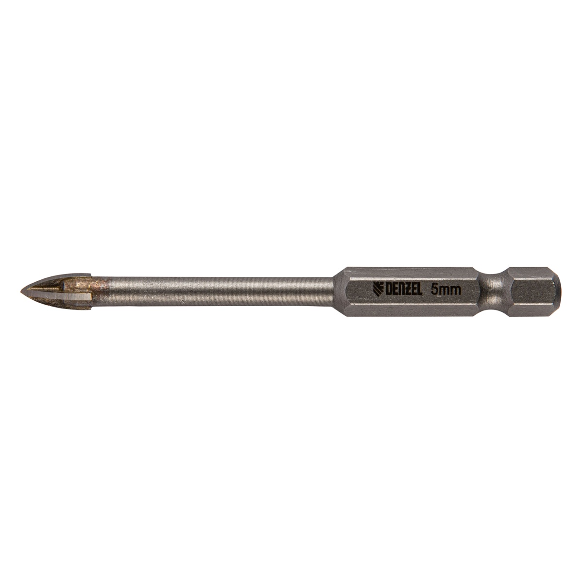 Сверло по керамической плитке 5 мм, крестовая пластина, шестигранный хвостовик// Denzel