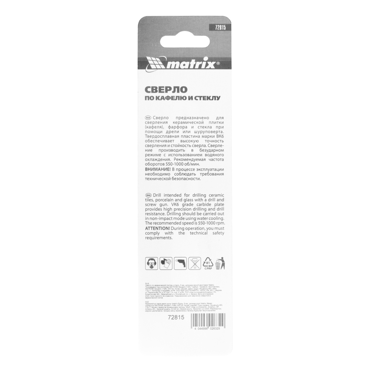 Купить Сверло по керамической плитке, 5 мм, цилиндрический хвостовик Matrix V6369 по лучшей цене с доставкой - интернет магазин №1 в России