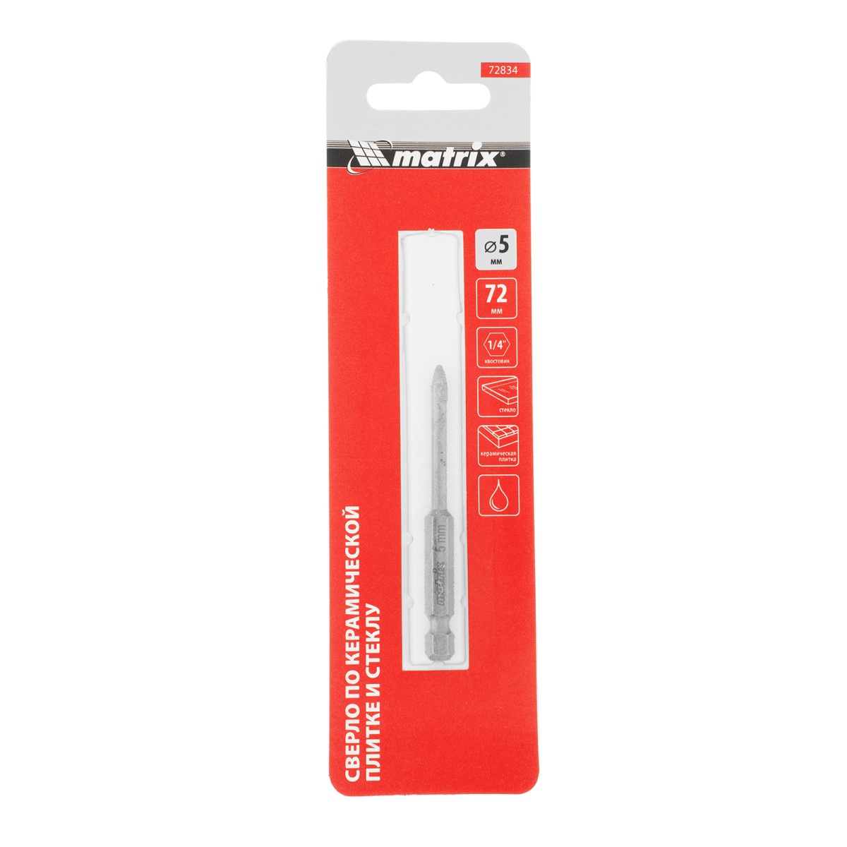 Купить Сверло по керамической плитке и стеклу, 5 мм, шестигранный хвостовик Matrix V6357 по лучшей цене с доставкой - интернет магазин №1 в России