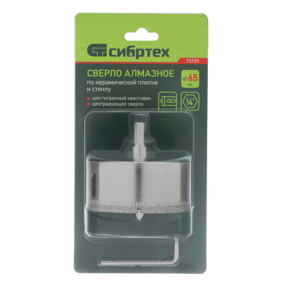 Купить Сверло по керамической плитке и стеклу, 65 х 55 мм, шестигранный хвостовик, с центрующим сверлом Сибртех V6361 по лучшей цене с доставкой - интернет магазин №1 в России