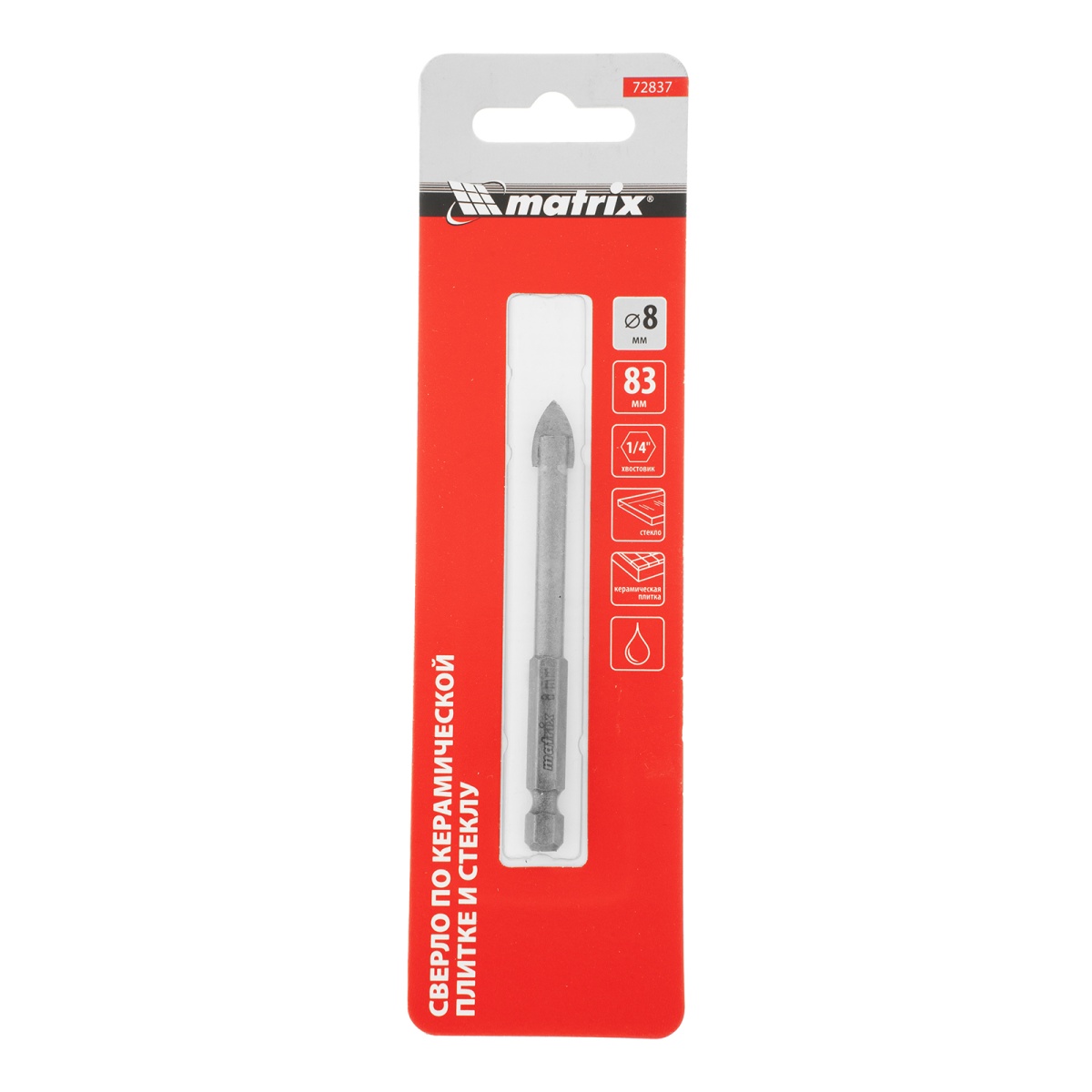 Купить Сверло по керамической плитке и стеклу, 8 мм, шестигранный хвостовик Matrix V6364 по лучшей цене с доставкой - интернет магазин №1 в России