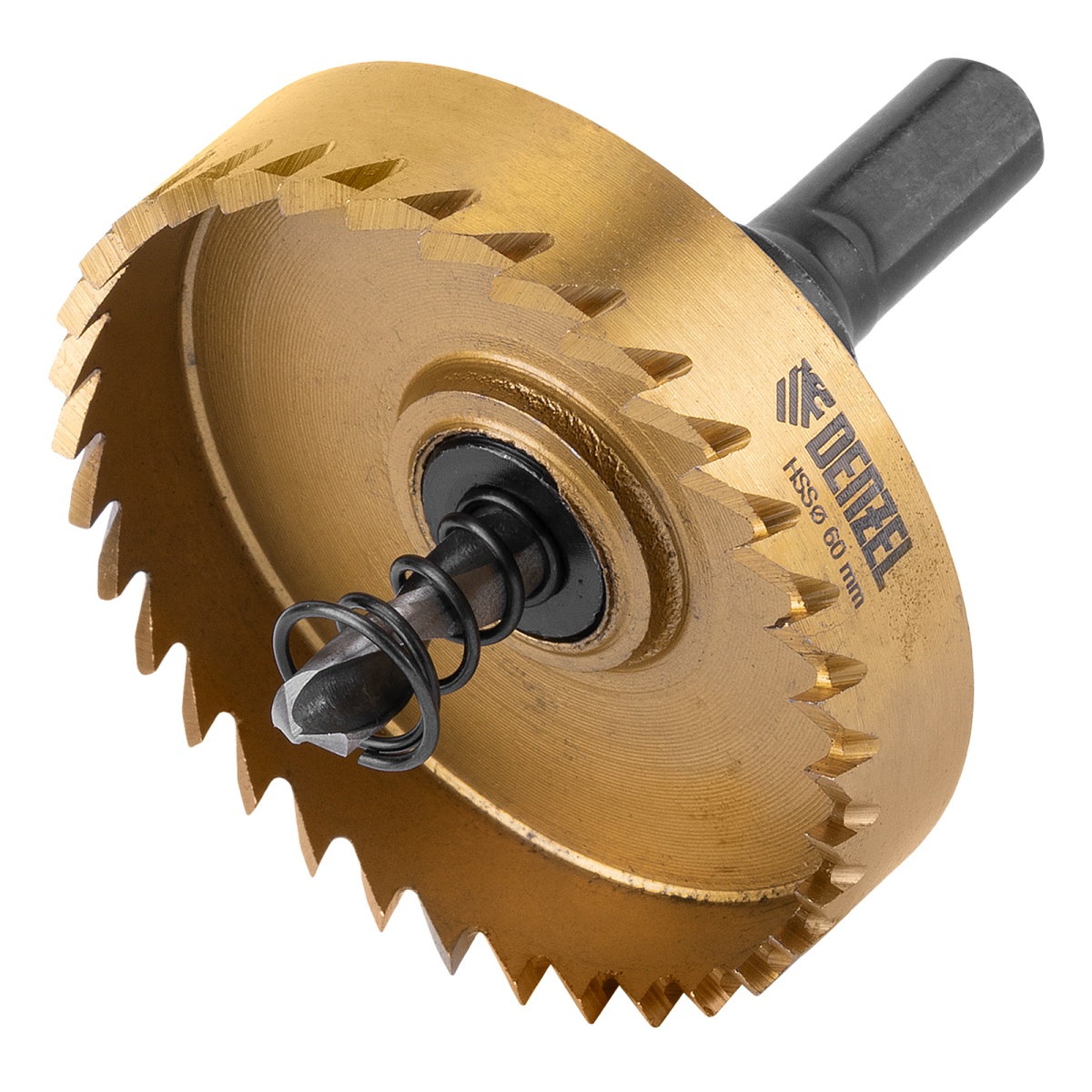 Наличие клапана для сброса давления Коронка по металлу HSS, 60 мм, нитридтитановое покрытие Denzel