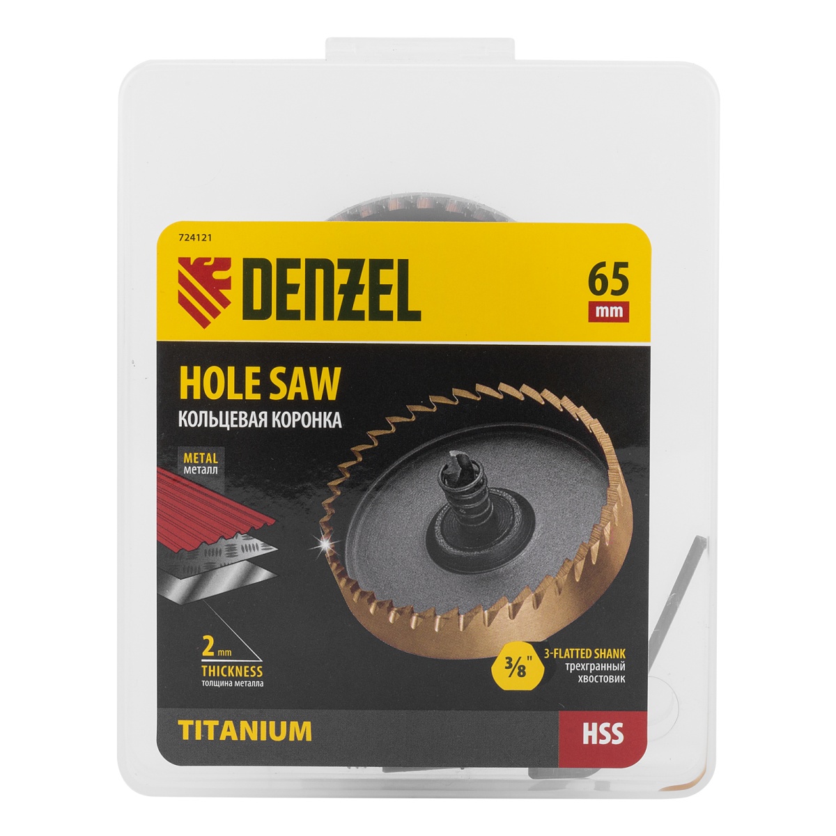 Купить Коронка по металлу HSS, 65 мм, нитридтитановое покрытие Denzel V2900 по лучшей цене с доставкой - интернет магазин №1 в России