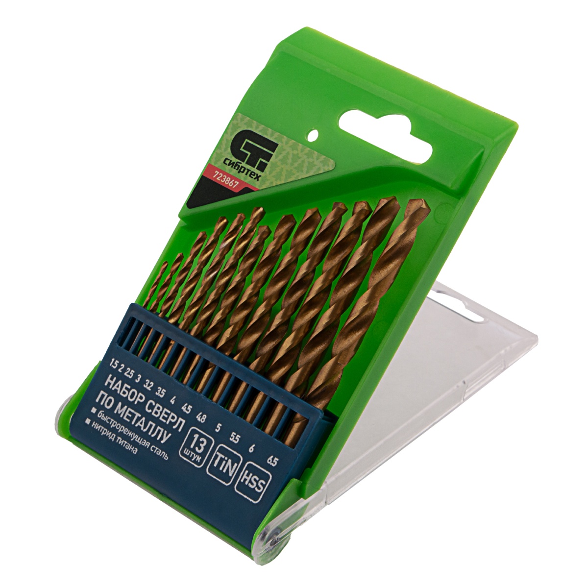 Купить Набор нитридтитановых сверл по металлу, 1.5-6.5 мм. (через 0.5 мм.+3.2 мм, 4.8 мм.) НSS 13 шт Сибртех V4447 по лучшей цене с доставкой - интернет магазин №1 в России