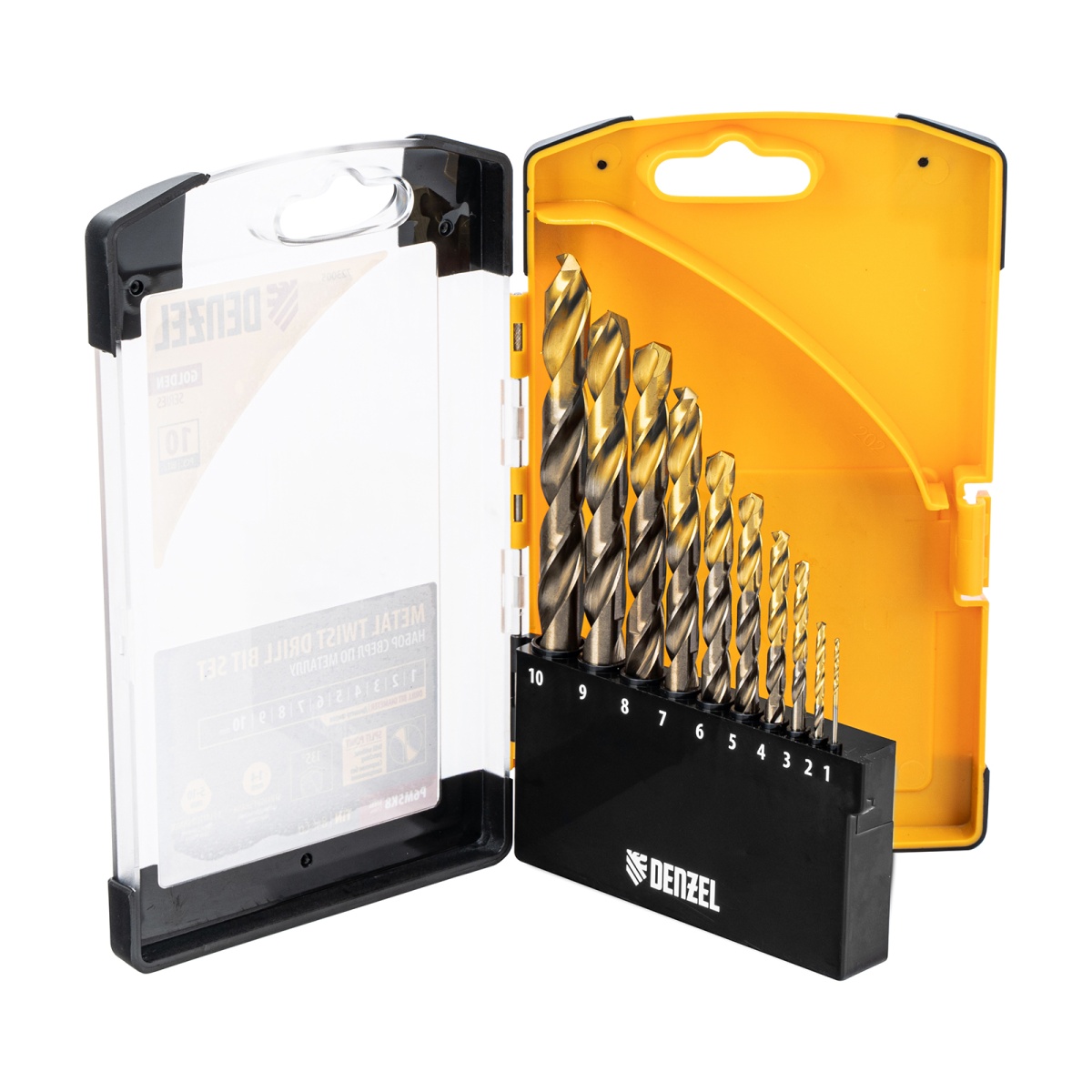 Купить Набор сверл по металлу, 1-10 мм, Р6М5К8-TiN, Golden Tip, 10 шт Denzel V4556 по лучшей цене с доставкой - интернет магазин №1 в России