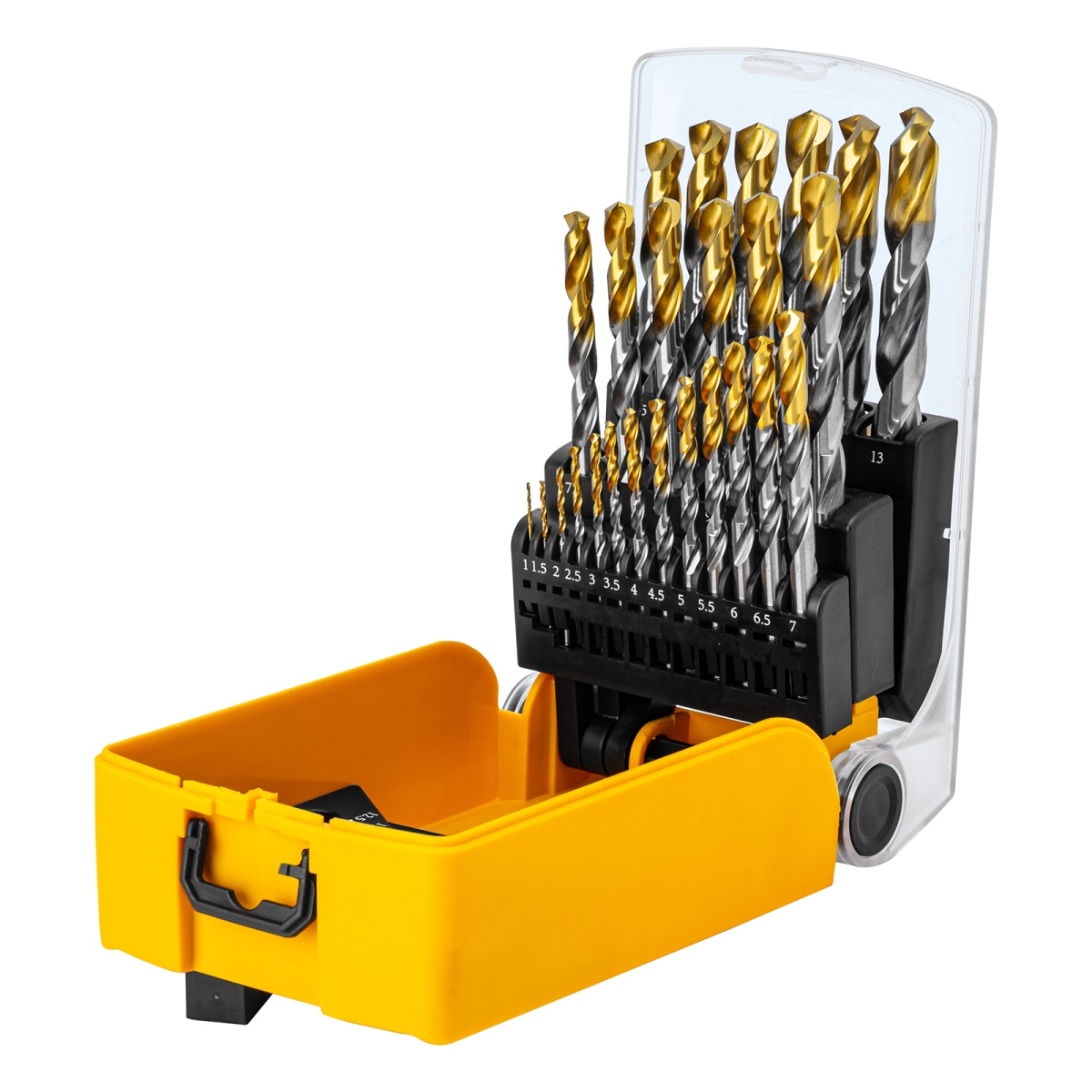 Наличие клапана для сброса давления Набор сверл по металлу, 1-13 мм, Р6М5-TiN, Golden Tip, 25 шт Denzel