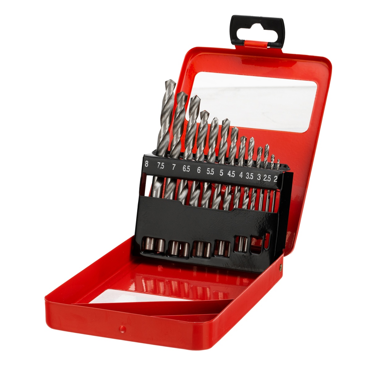 Набор сверл по металлу, 2-8 мм (через 0.5 мм) HSS 13 шт, металлическая коробка, цилиндрический хвостовик Matrix