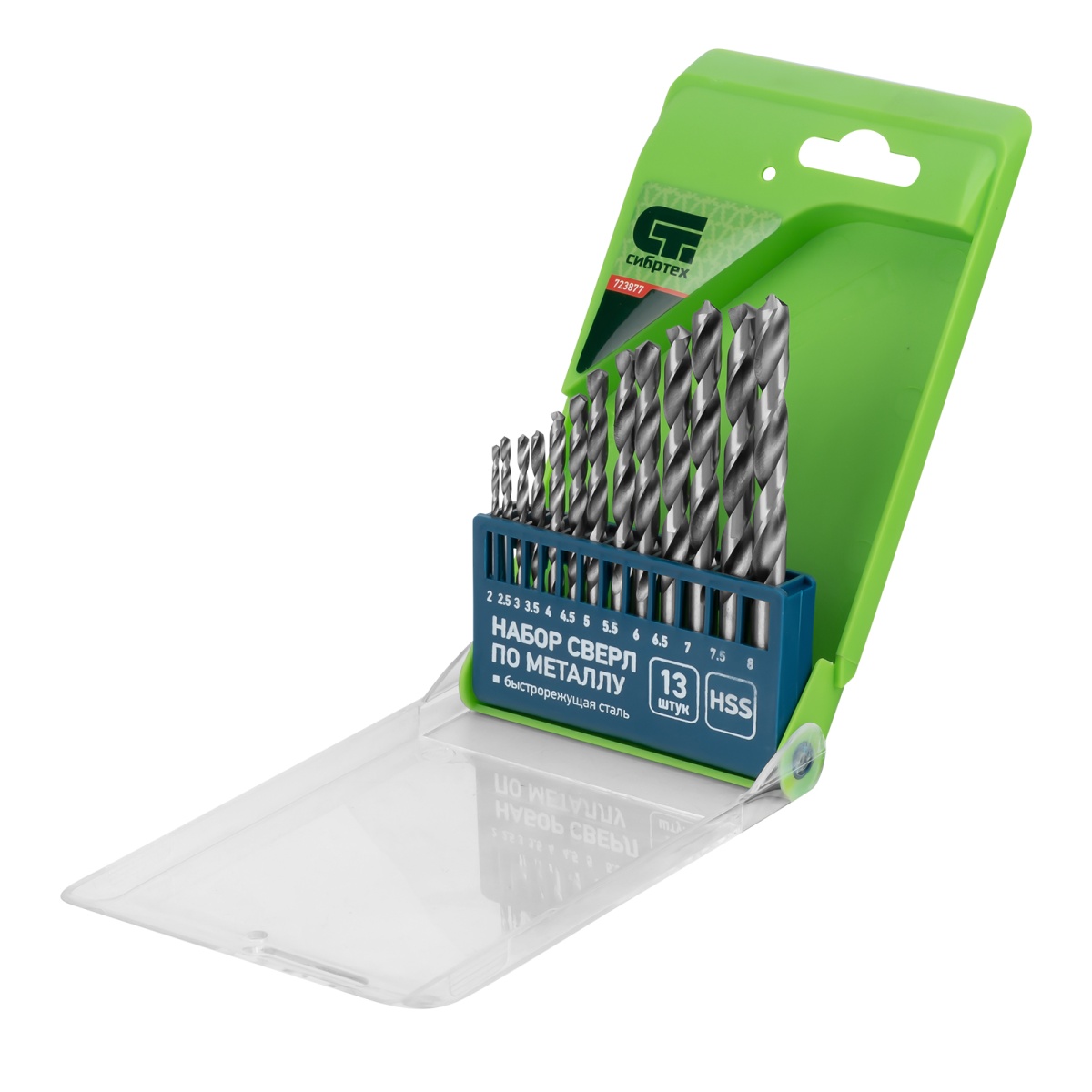 Купить Набор сверл по металлу, 2-8 мм, (через 0.5 мм) HSS 13 шт, пластиковая коробка, цилиндрический хвостовик Сибртех V4565 по лучшей цене с доставкой - интернет магазин №1 в России
