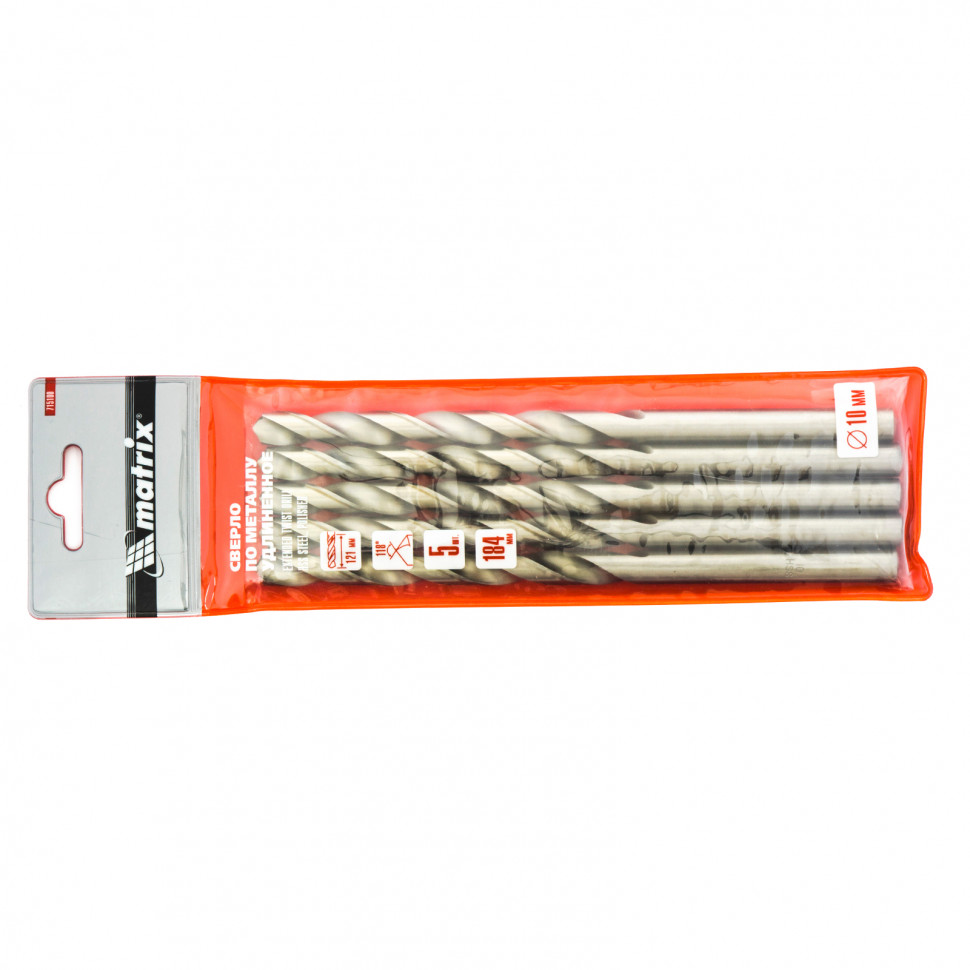 Купить Сверло по металлу, 10 х 184 мм, полированное, удл, HSS, 5 шт, цилиндрический хвостовик Matrix V6377 по лучшей цене с доставкой - интернет магазин №1 в России