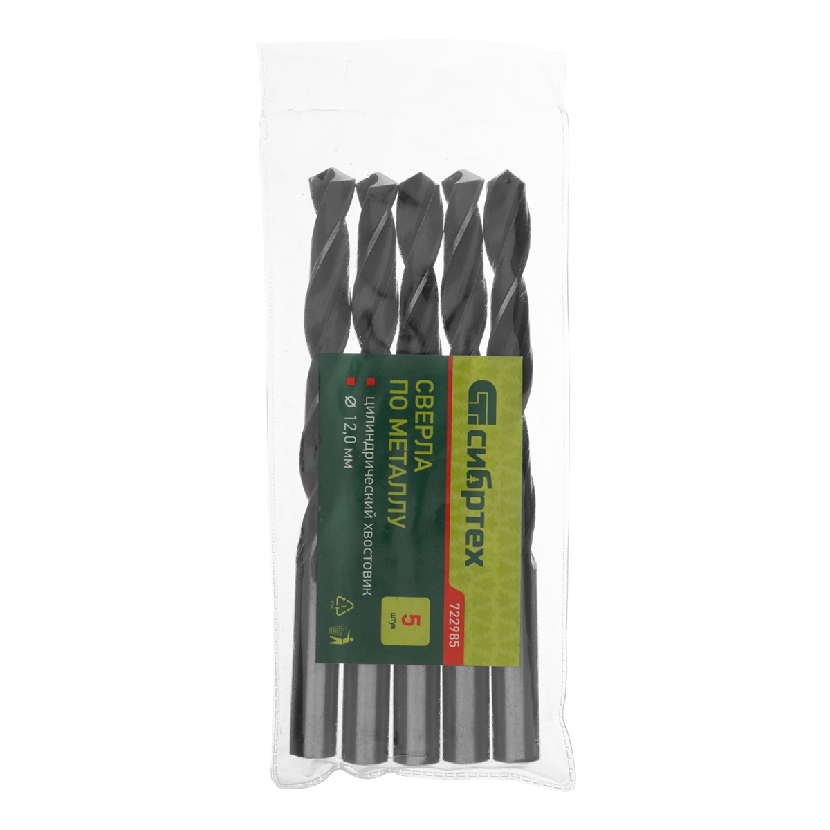 Купить Сверло по металлу, 12 мм, быстрорежущая сталь, 5 шт, цилиндрический хвостовик Сибртех V6383 по лучшей цене с доставкой - интернет магазин №1 в России