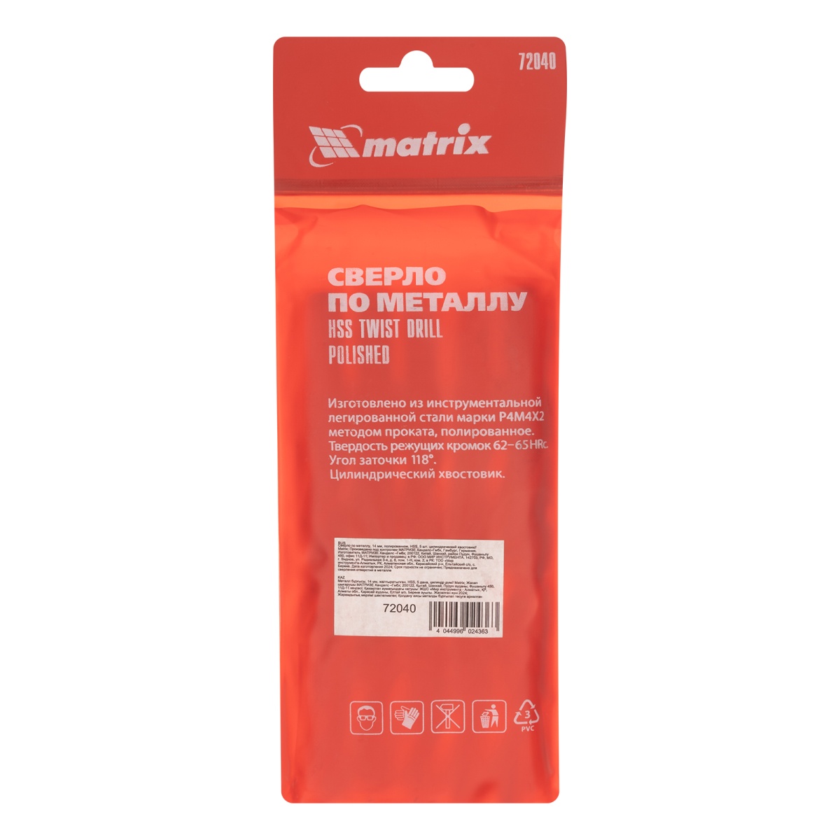 Наличие клапана для сброса давления Сверло по металлу, 14 мм, полированное, HSS, 5 шт, цилиндрический хвостовик Matrix