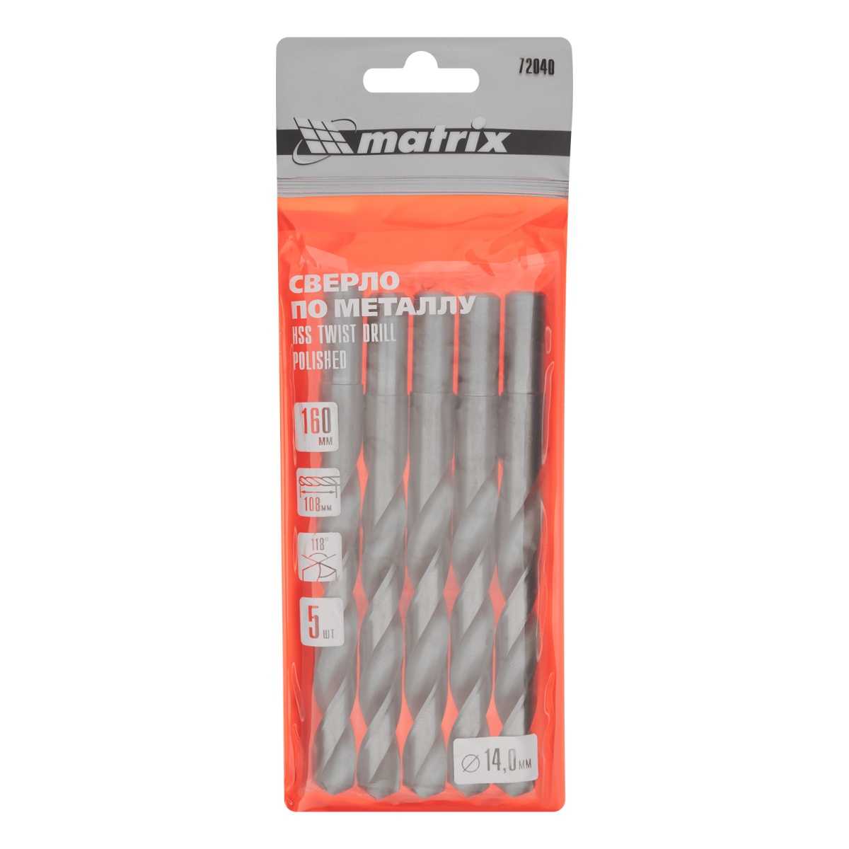 Сверло по металлу, 14 мм, полированное, HSS, 5 шт, цилиндрический хвостовик Matrix