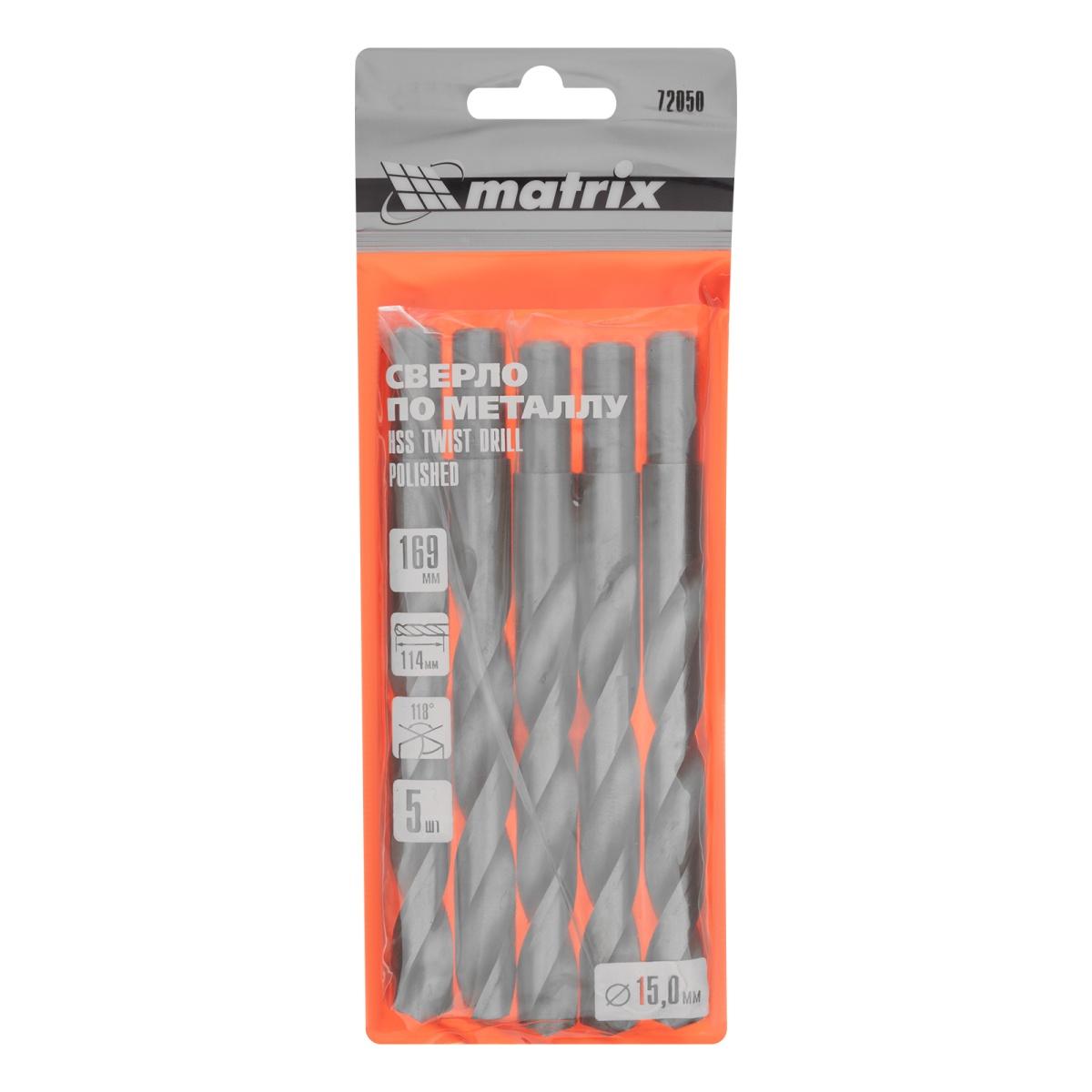 Купить Сверло по металлу, 15 мм, полированное, HSS, 5 шт, цилиндрический хвостовик Matrix V6390 по лучшей цене с доставкой - интернет магазин №1 в России
