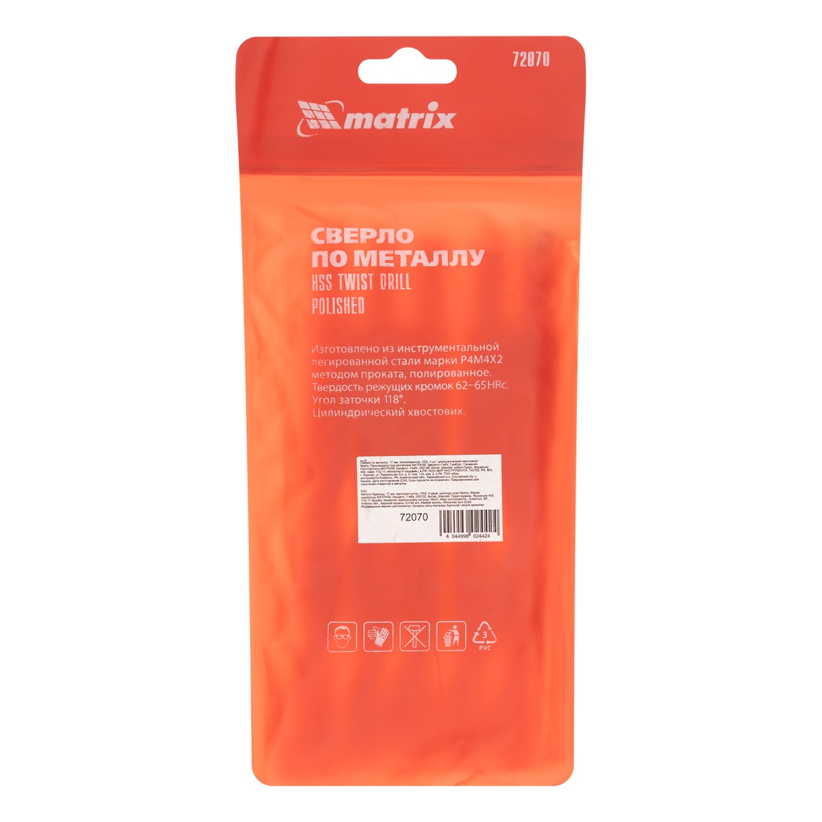 Наличие клапана для сброса давления Сверло по металлу, 17 мм, полированное, HSS, 5 шт, цилиндрический хвостовик Matrix