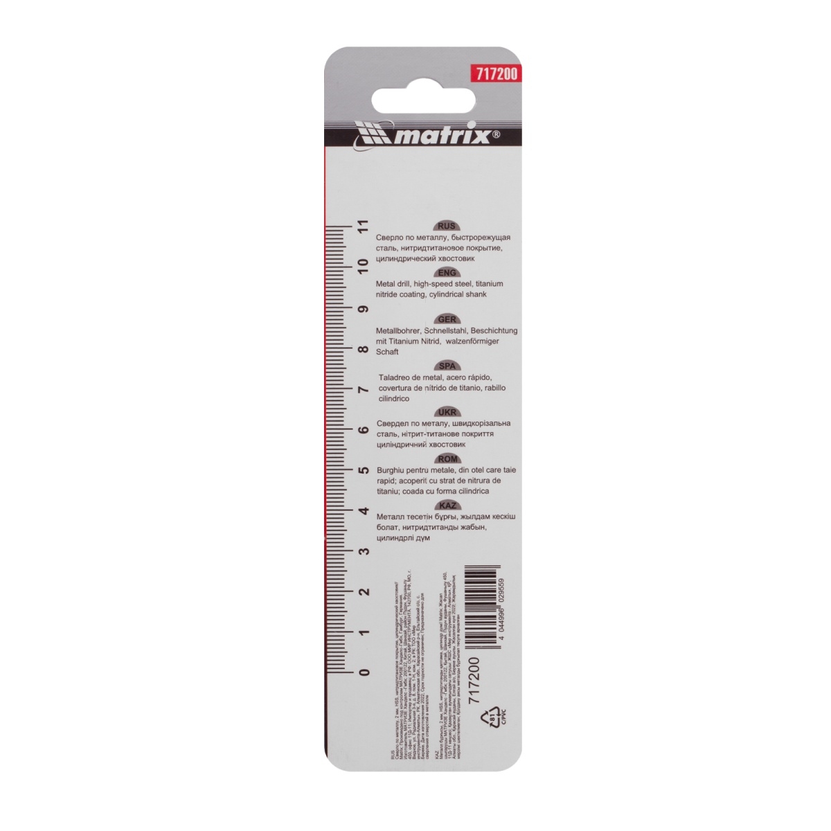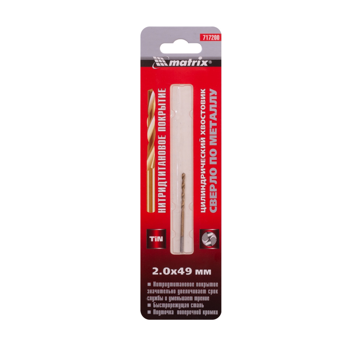 Сверло по металлу, 2 мм, HSS, нитридтитановое покрытие, цилиндрический хвостовик Matrix