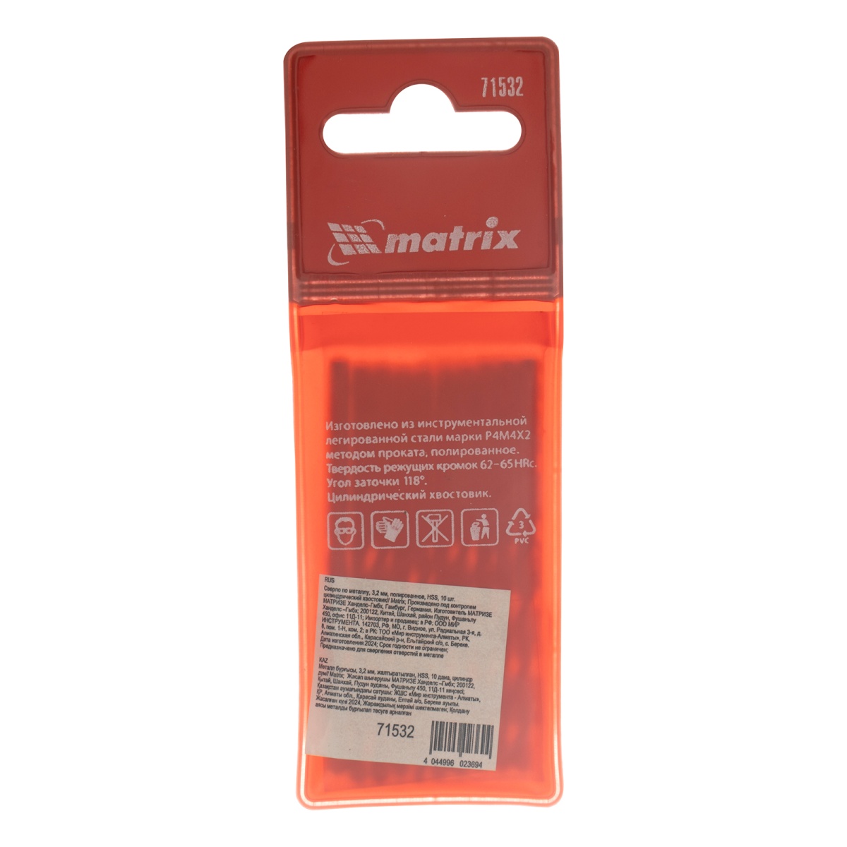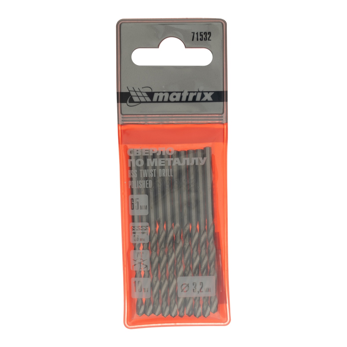 Купить Сверло по металлу, 3.2 мм, полированное, HSS, 10 шт, цилиндрический хвостовик Matrix V6412 по лучшей цене с доставкой - интернет магазин №1 в России