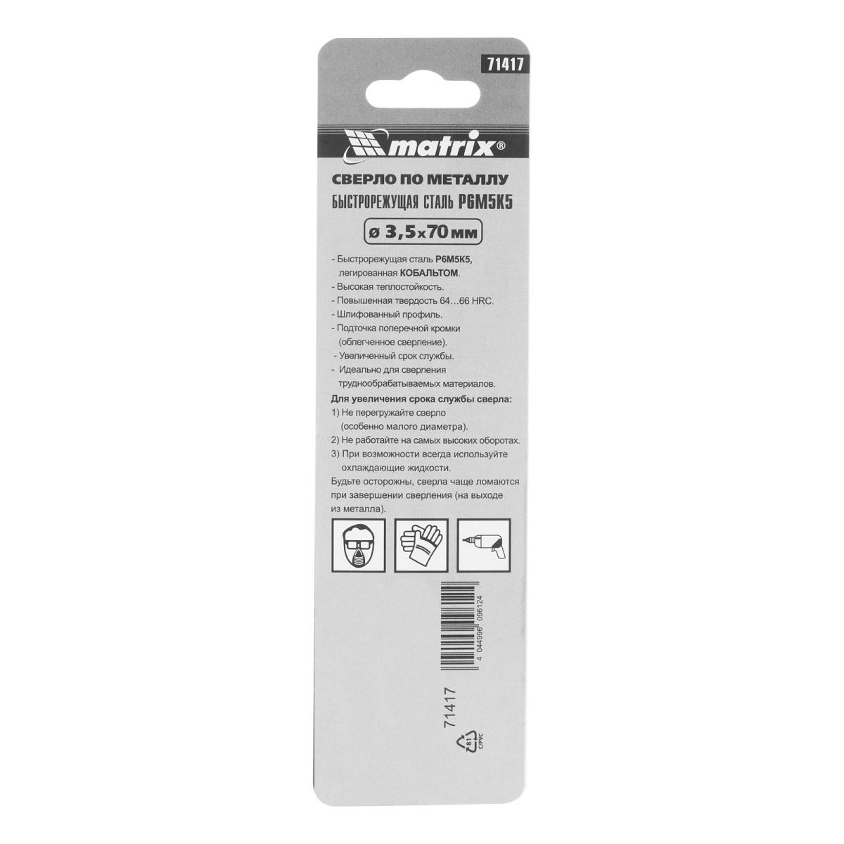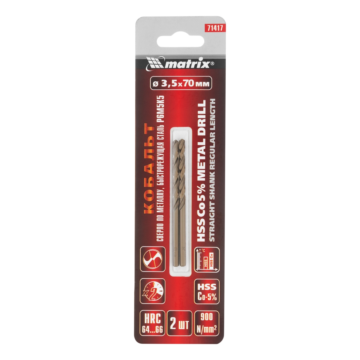 Купить Сверло по металлу, 3.5 мм, HSS Co-5%, 2 шт Matrix V6413 по лучшей цене с доставкой - интернет магазин №1 в России