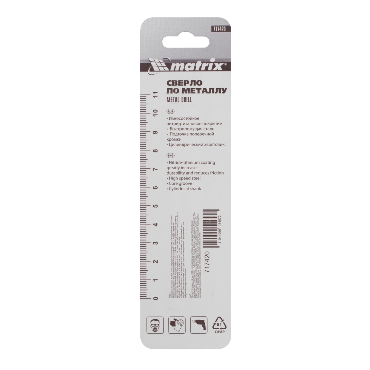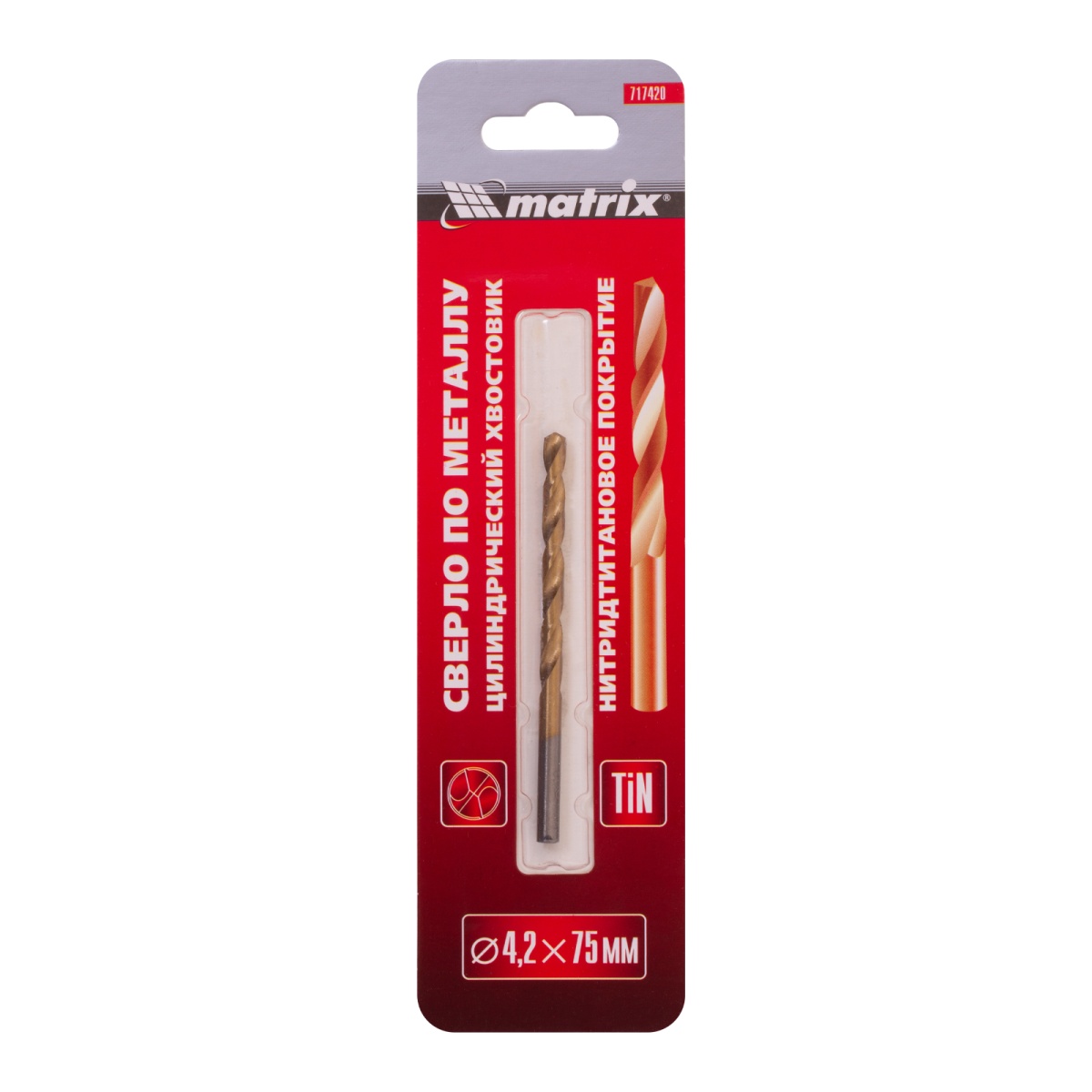 Купить Сверло по металлу, 4.2 мм, HSS, нитридтитановое покрытие, цилиндрический хвостовик Matrix V6428 по лучшей цене с доставкой - интернет магазин №1 в России