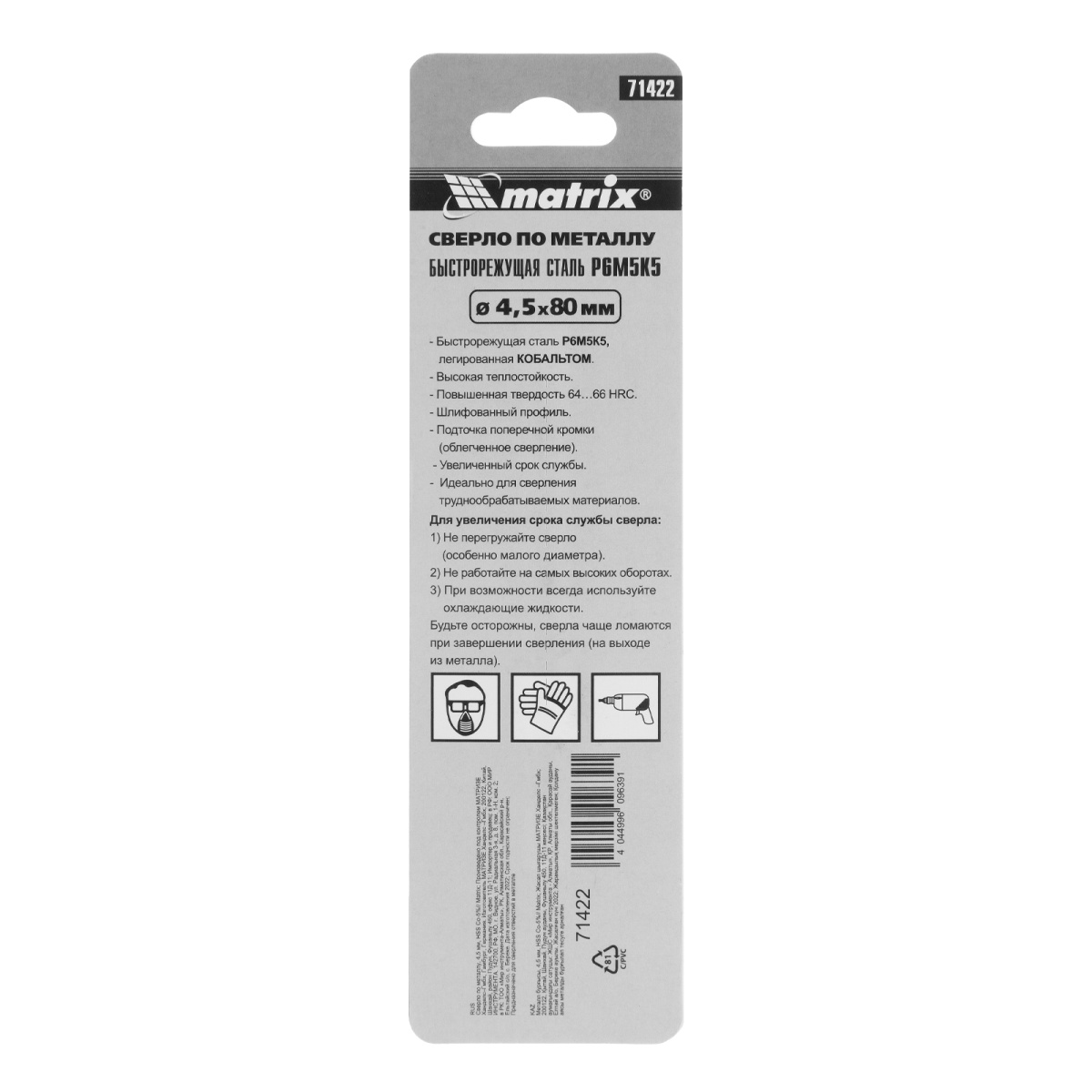 Купить Сверло по металлу, 4.5 мм, HSS Co-5% Matrix V6430 по лучшей цене с доставкой - интернет магазин №1 в России