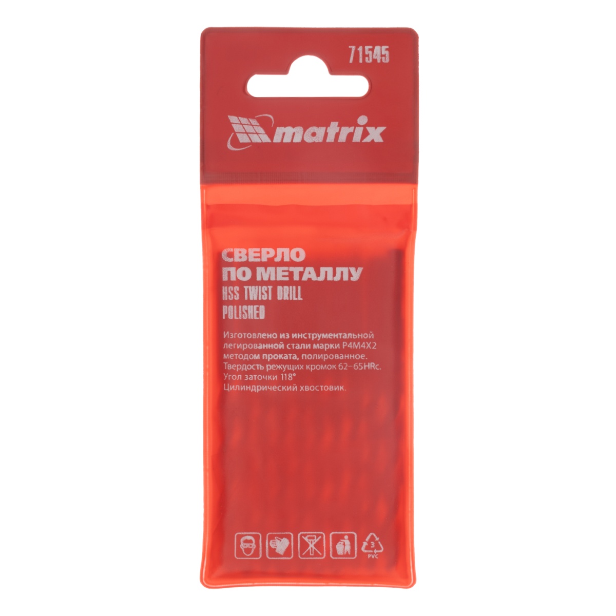 Сверло по металлу, 4.5 мм, полированное, HSS, 10 шт, цилиндрический хвостовик Matrix