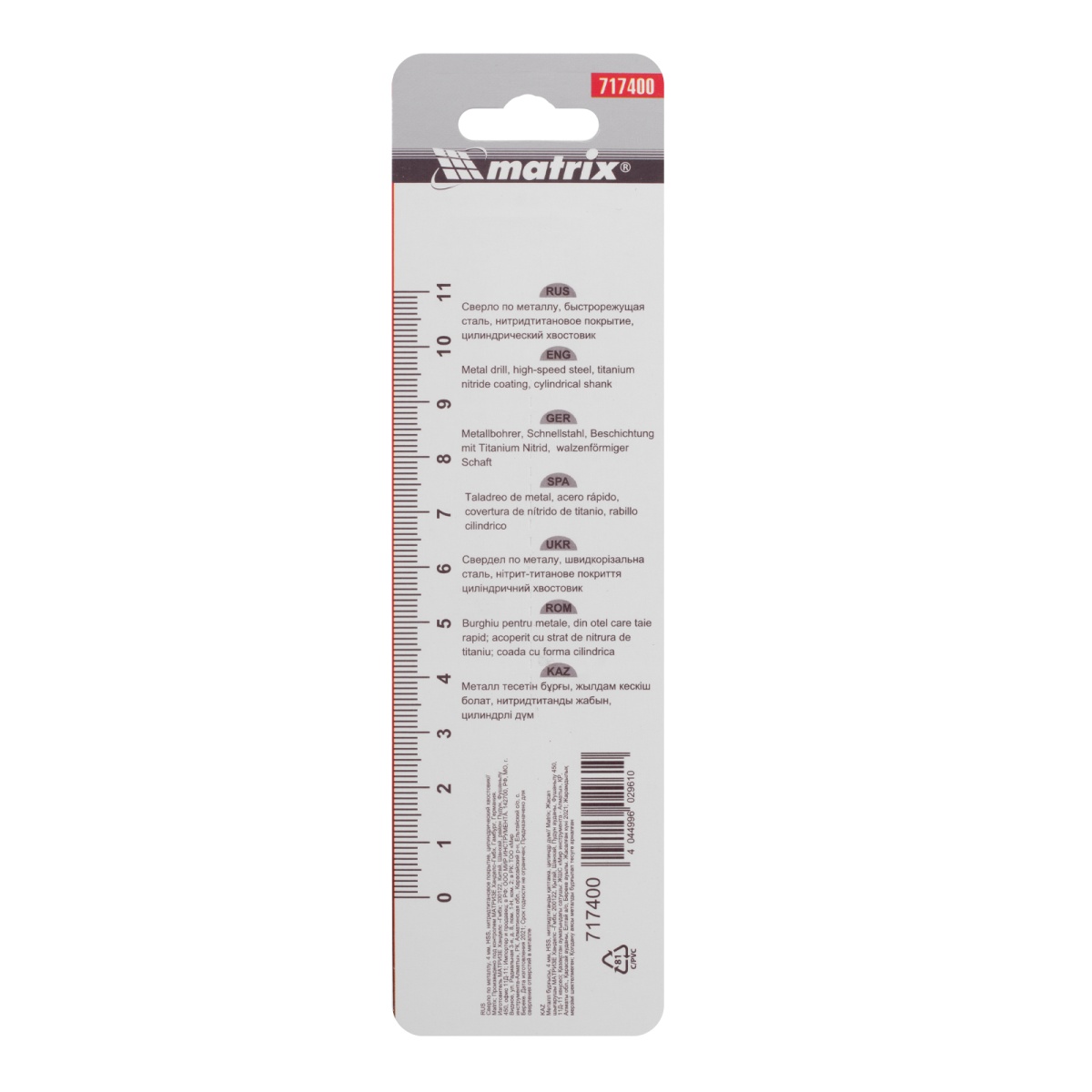 Купить Сверло по металлу, 4 мм, HSS, нитридтитановое покрытие, цилиндрический хвостовик Matrix V6419 по лучшей цене с доставкой - интернет магазин №1 в России