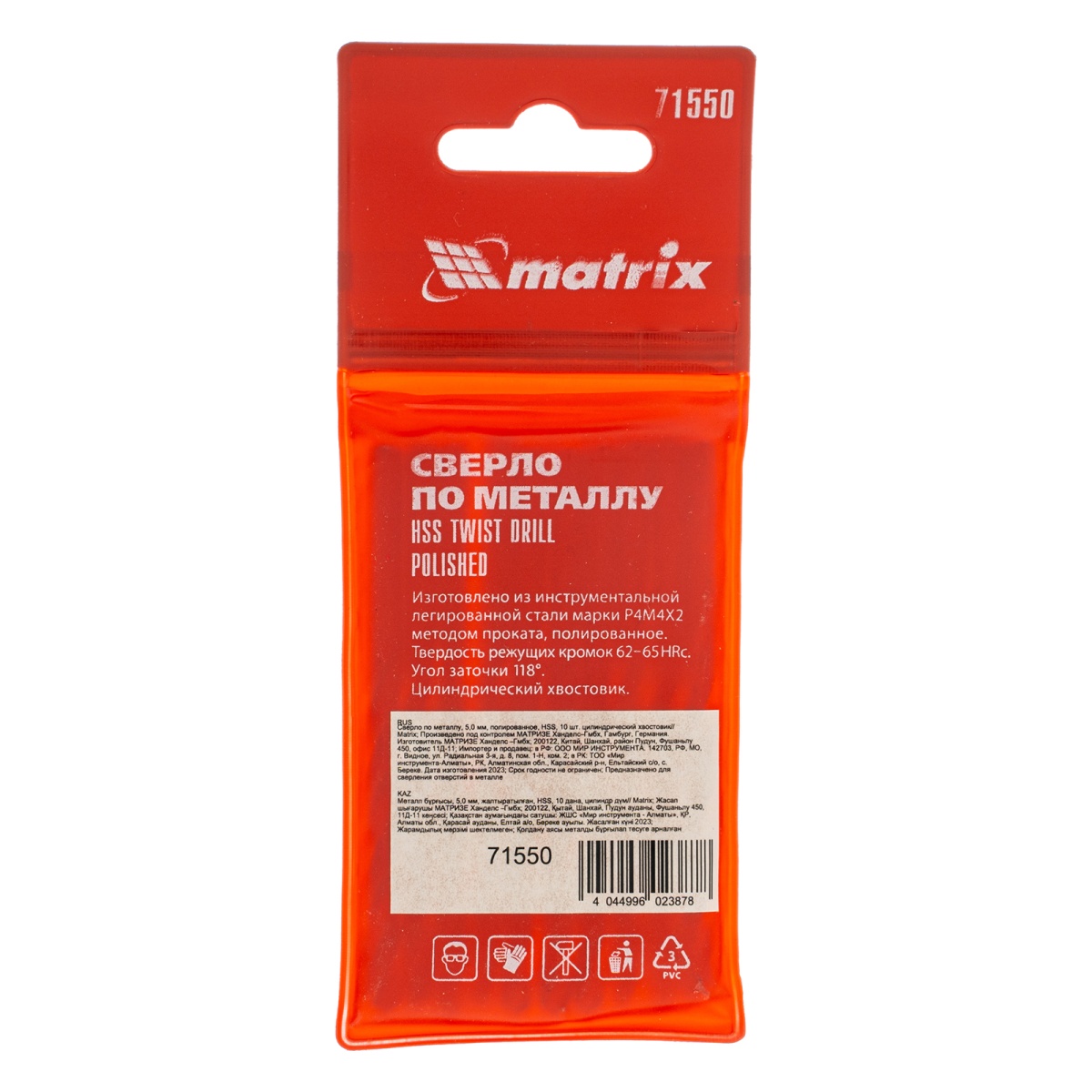 Наличие клапана для сброса давления Сверло по металлу, 5 мм, полированное, HSS, 10 шт, цилиндрический хвостовик Matrix