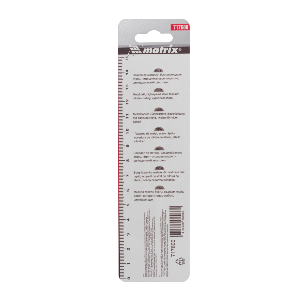 Сверло по металлу, 6 мм, HSS, нитридтитановое покрытие, цилиндрический хвостовик Matrix