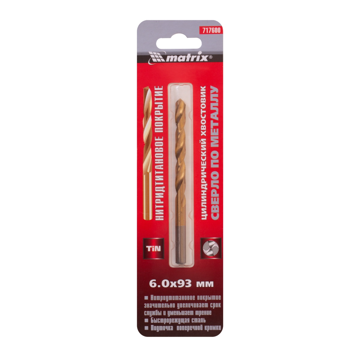 Купить Сверло по металлу, 6 мм, HSS, нитридтитановое покрытие, цилиндрический хвостовик Matrix V6446 по лучшей цене с доставкой - интернет магазин №1 в России