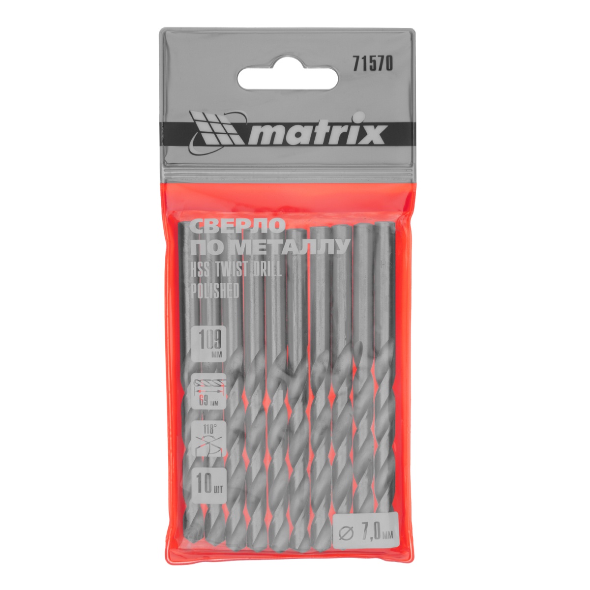 Купить Сверло по металлу, 7 мм, полированное, HSS, 10 шт, цилиндрический хвостовик Matrix V6459 по лучшей цене с доставкой - интернет магазин №1 в России