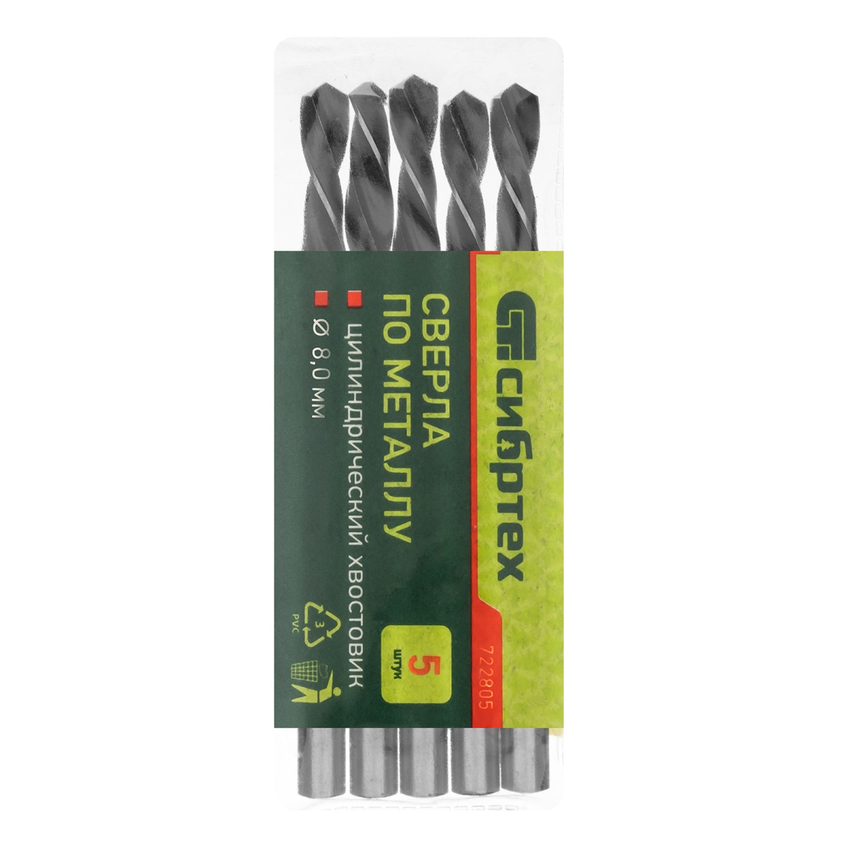 Купить Сверло по металлу, 8 мм, быстрорежущая сталь, 5 шт, цилиндрический хвостовик Сибртех V6466 по лучшей цене с доставкой - интернет магазин №1 в России