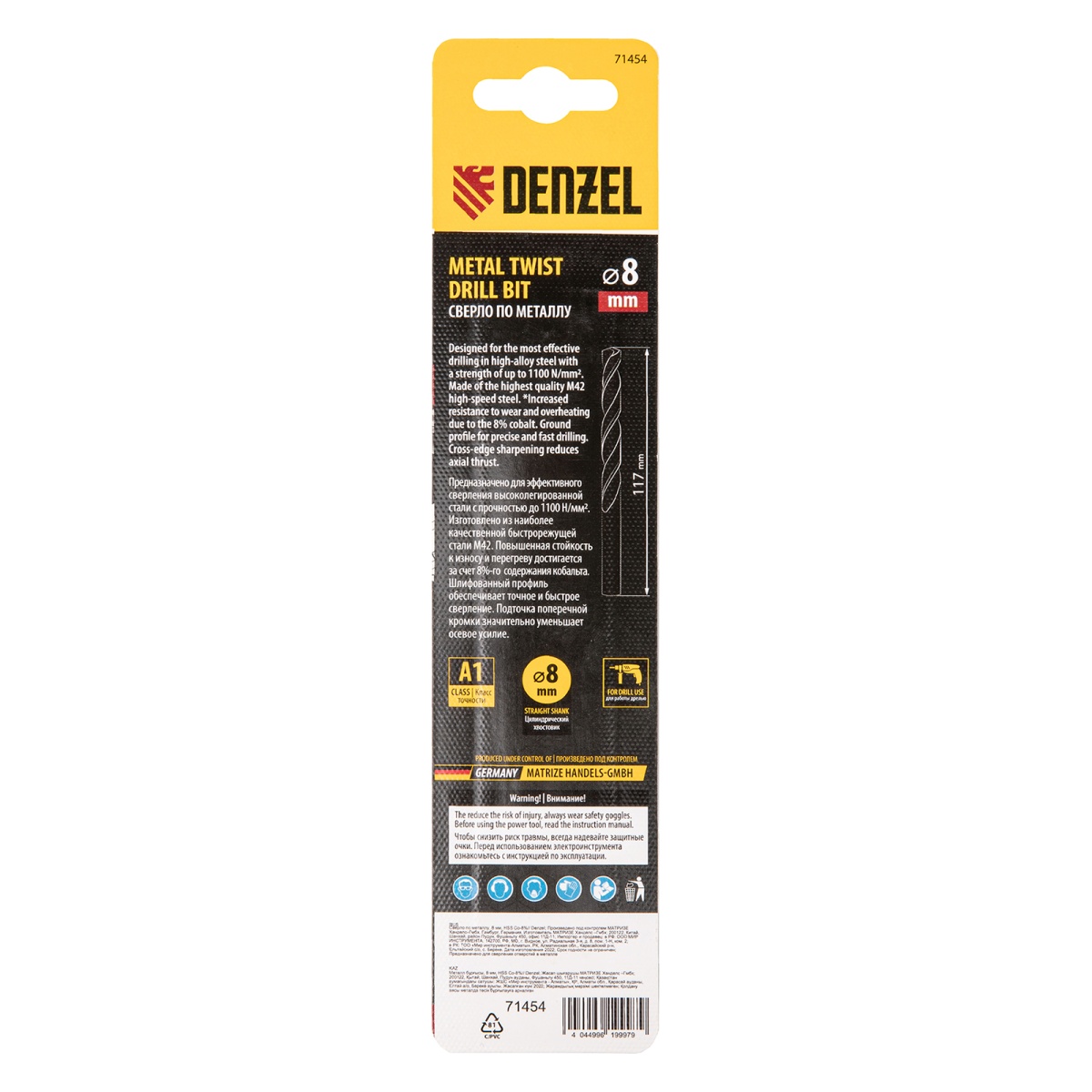 Купить Сверло по металлу, 8 мм, HSS Co-8%// Denzel V6463 по лучшей цене с доставкой - интернет магазин №1 в России