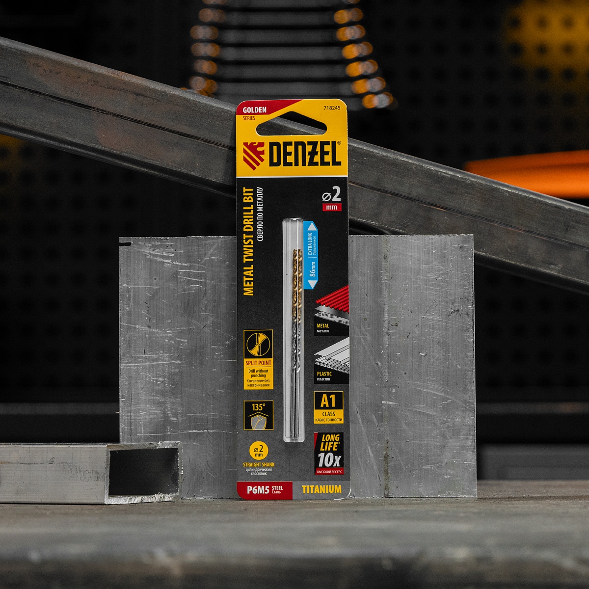 Купить Сверло спиральное по металлу 2 х 86 мм Р6М5, Golden Tip, удлиненное, 2шт. Denzel V6481 по лучшей цене с доставкой - интернет магазин №1 в России