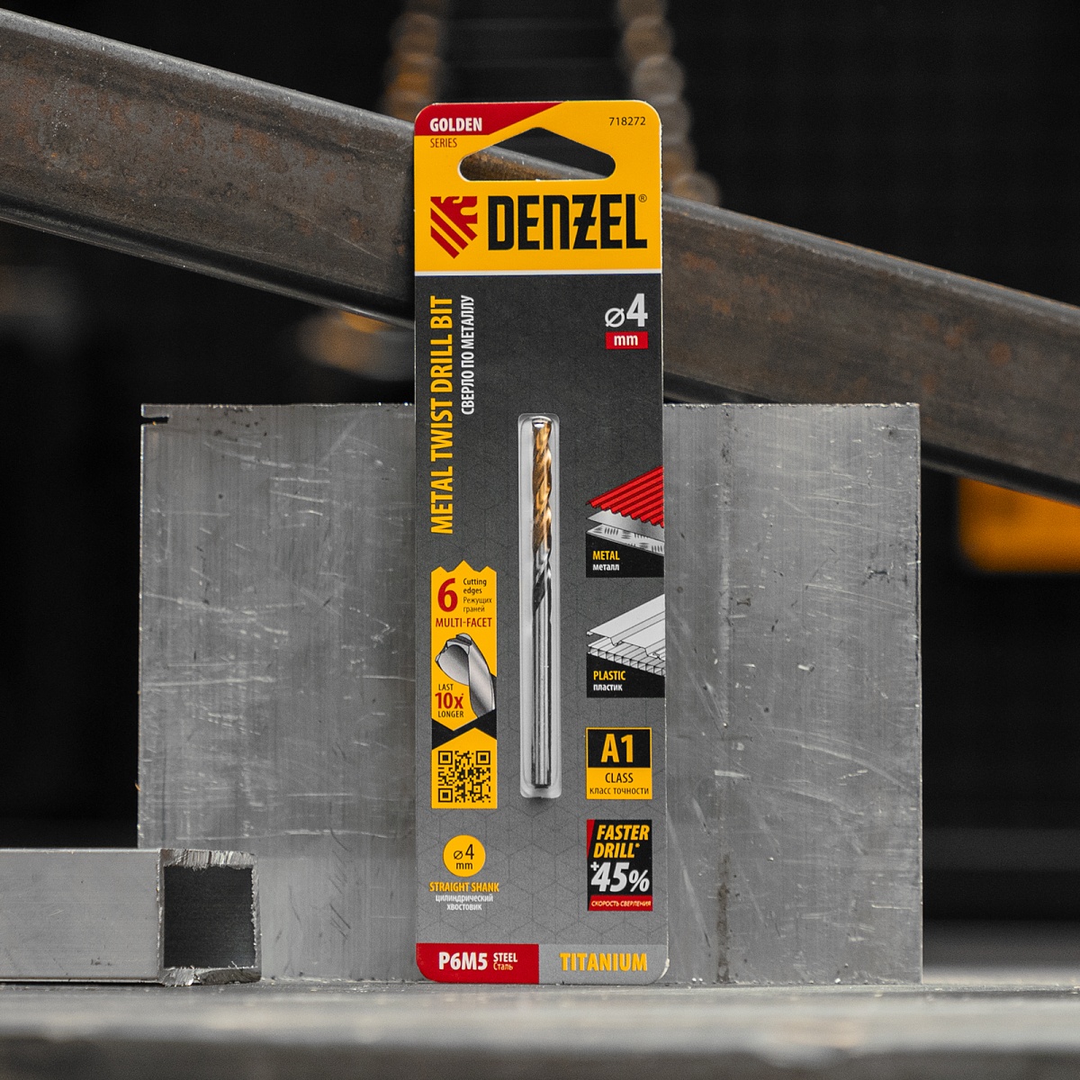 Купить Сверло спиральное по металлу 4 x 75мм, Р6М5, Golden Tip, многогранная заточка Denzel V6489 по лучшей цене с доставкой - интернет магазин №1 в России