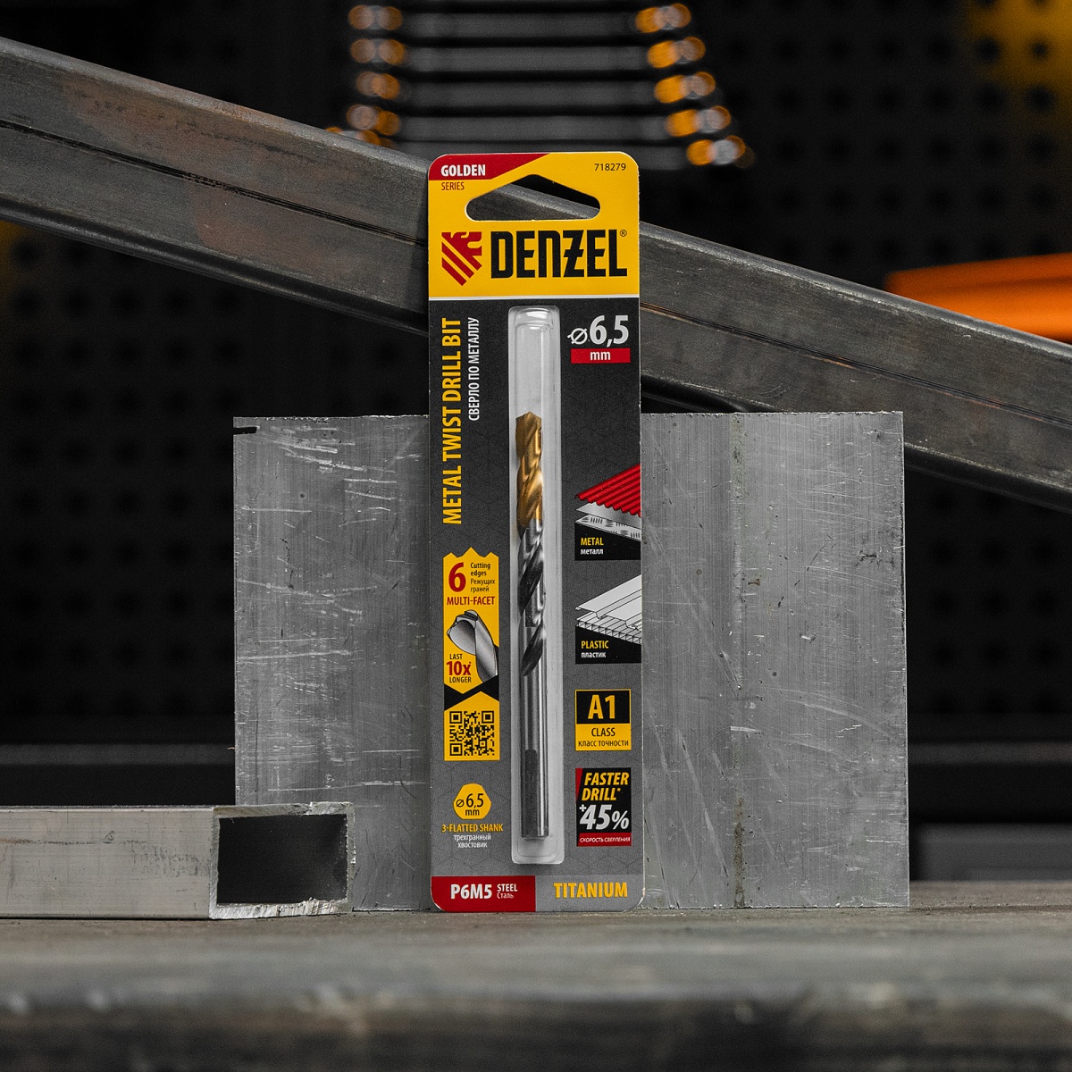 Купить Сверло спиральное по металлу 6,5 x 93мм, Р6М5, Golden Tip, многогранная заточка Denzel V6497 по лучшей цене с доставкой - интернет магазин №1 в России