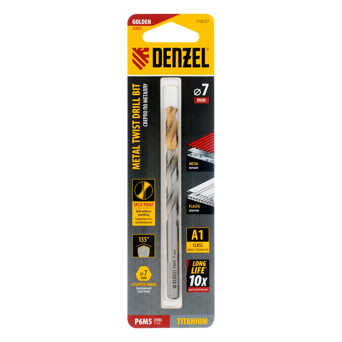 Купить Сверло спиральное по металлу 7,0 x 109 мм, Р6М5, Golden Tip Denzel V6498 по лучшей цене с доставкой - интернет магазин №1 в России