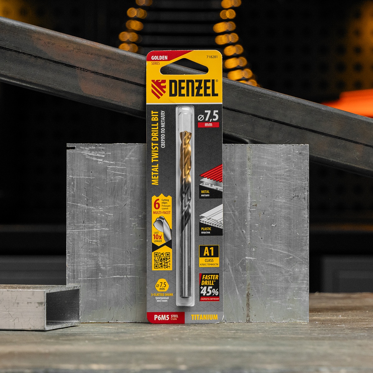 Сверло спиральное по металлу 7,5 x 109мм, Р6М5, Golden Tip, многогранная заточка Denzel