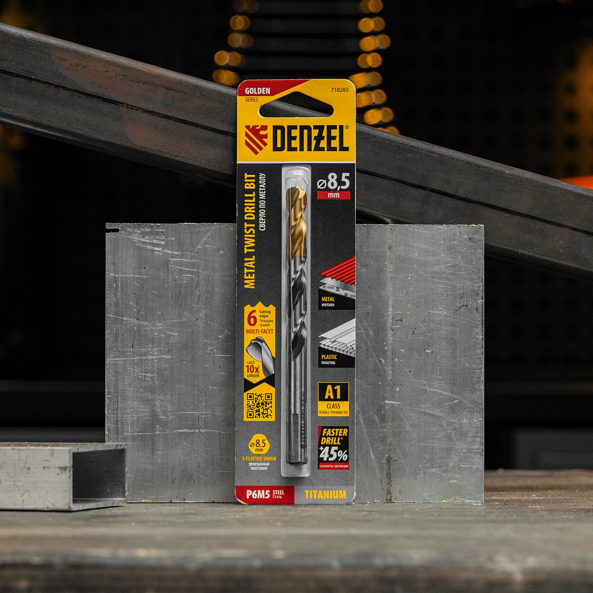 Купить Сверло спиральное по металлу 8,5 x 117мм, Р6М5, Golden Tip, многогранная заточка Denzel V6506 по лучшей цене с доставкой - интернет магазин №1 в России