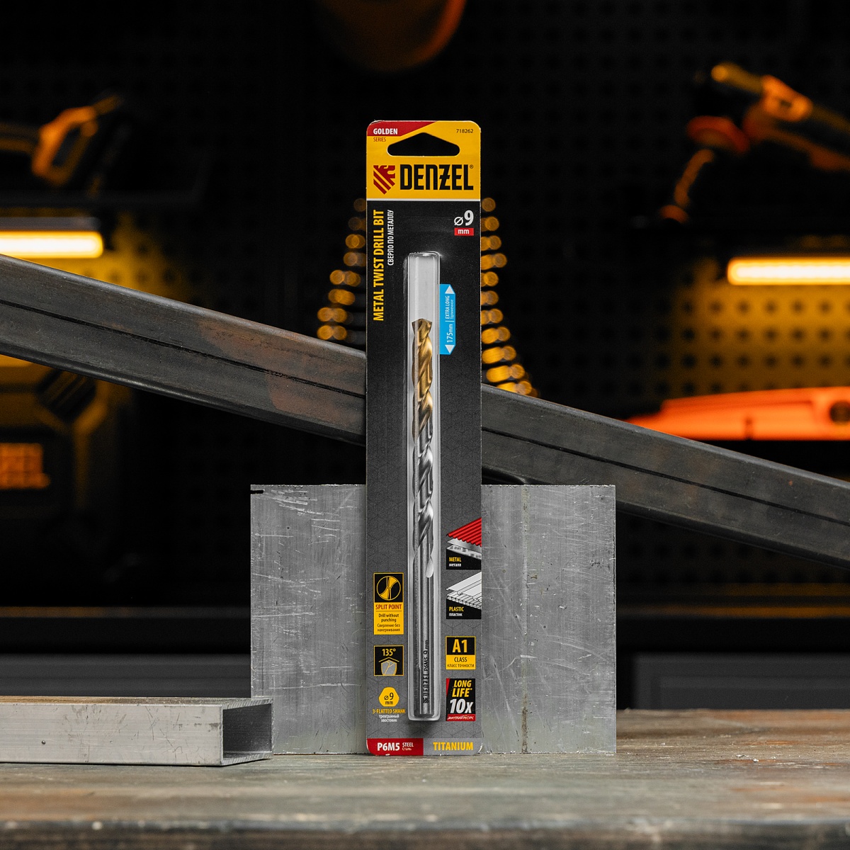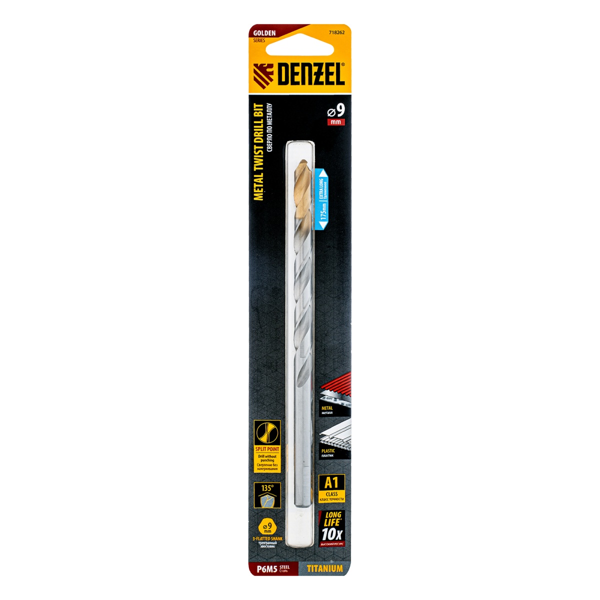 Купить Сверло спиральное по металлу 9 х 175 мм, Р6М5, Golden Tip, удлиненное Denzel V6510 по лучшей цене с доставкой - интернет магазин №1 в России