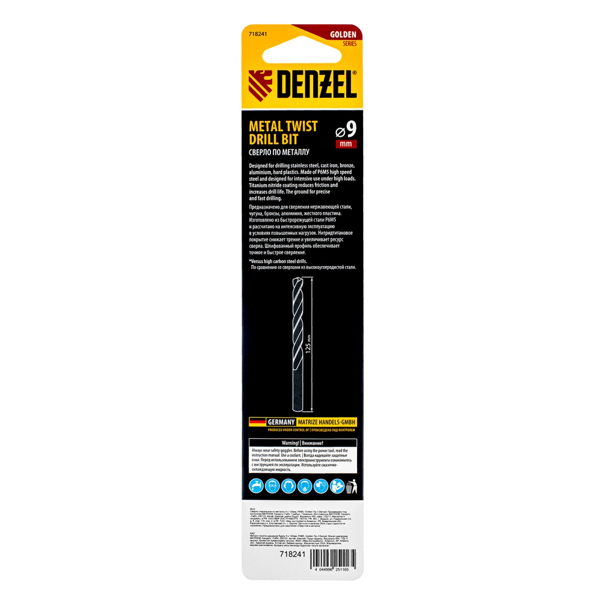 Купить Сверло спиральное по металлу 9 x 125 мм, Р6М5, Golden Tip Denzel V6508 по лучшей цене с доставкой - интернет магазин №1 в России