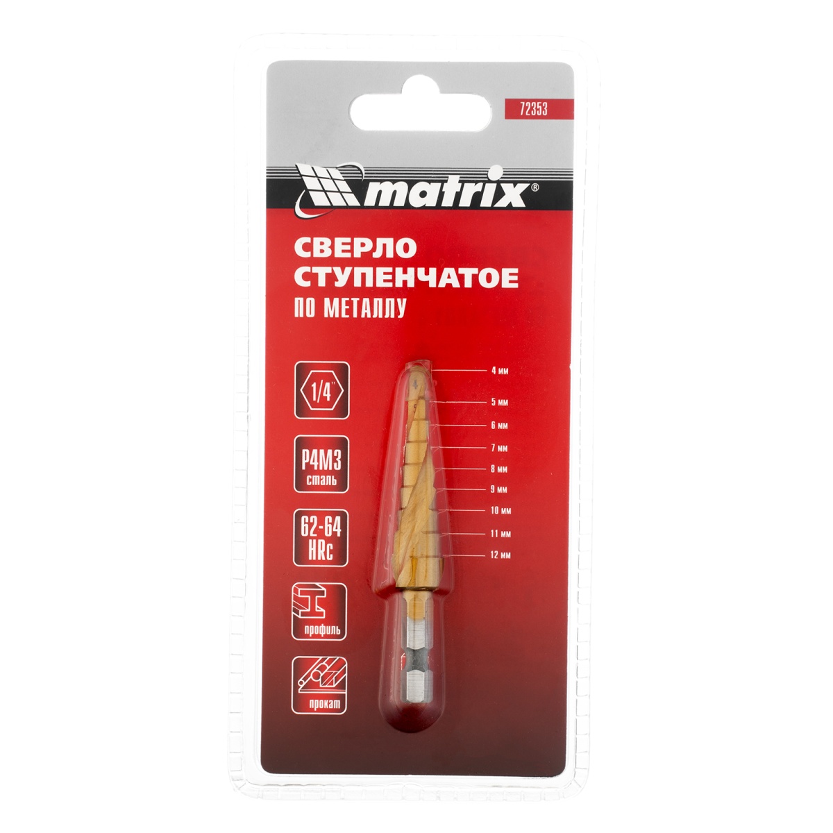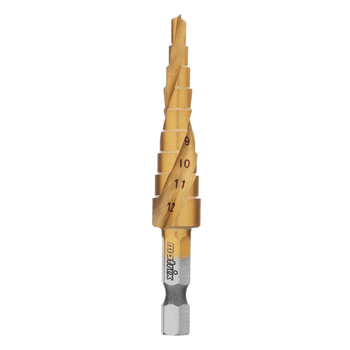 Купить Сверло ступенчатое 4-5-6-7-8-9-10-11-12 мм, HSS, спиральный профиль, шестигранный хвостовик Matrix V6513 по лучшей цене с доставкой - интернет магазин №1 в России