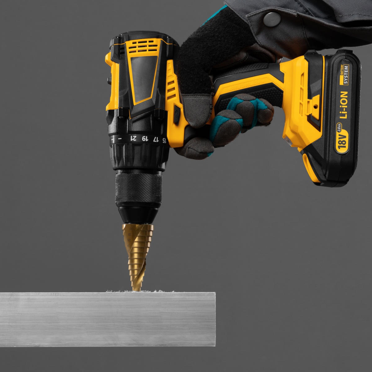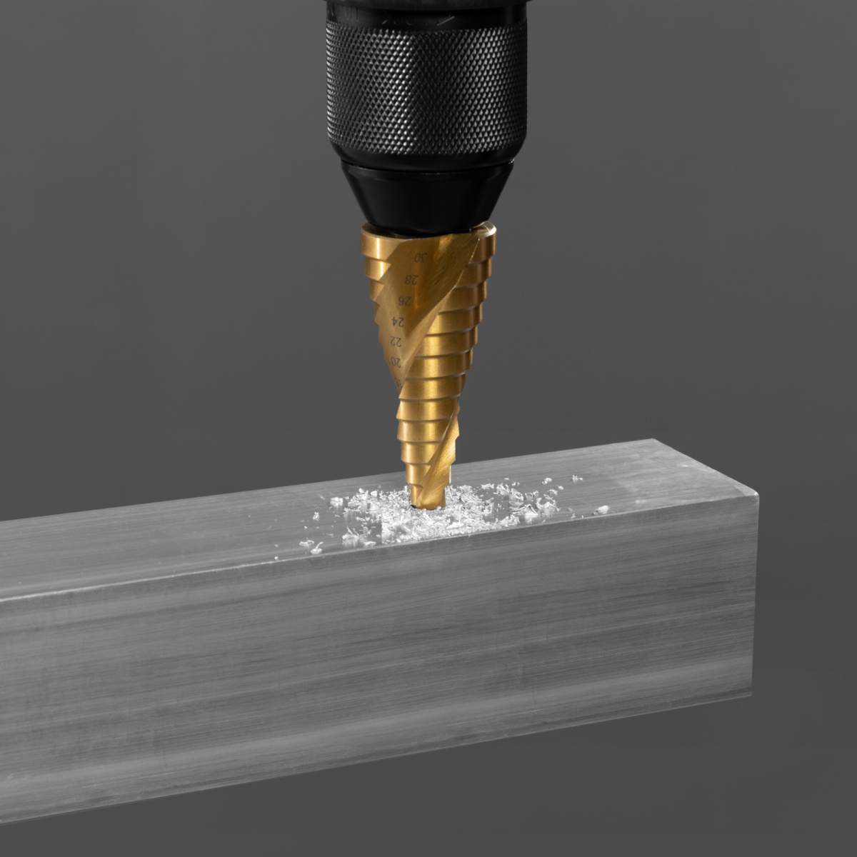 Наличие клапана для сброса давления Сверло ступенчатое, 6-8-10-12-14-16-18-20-22-24-26-28-30 мм, HSS, спиральный профиль, трехгранный хвостовик Matrix