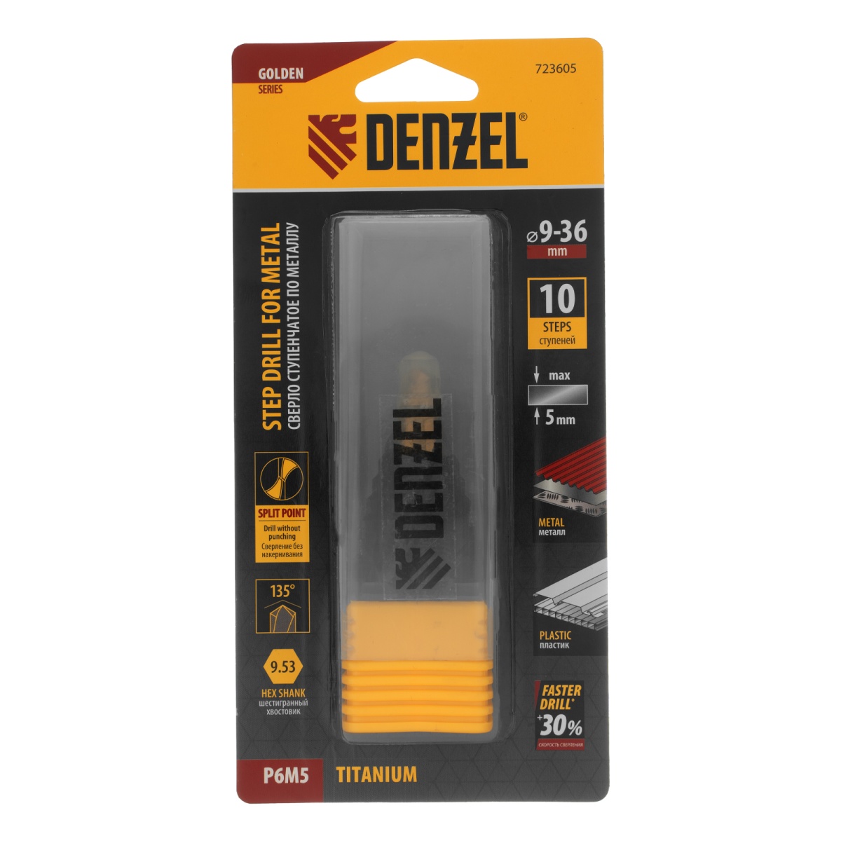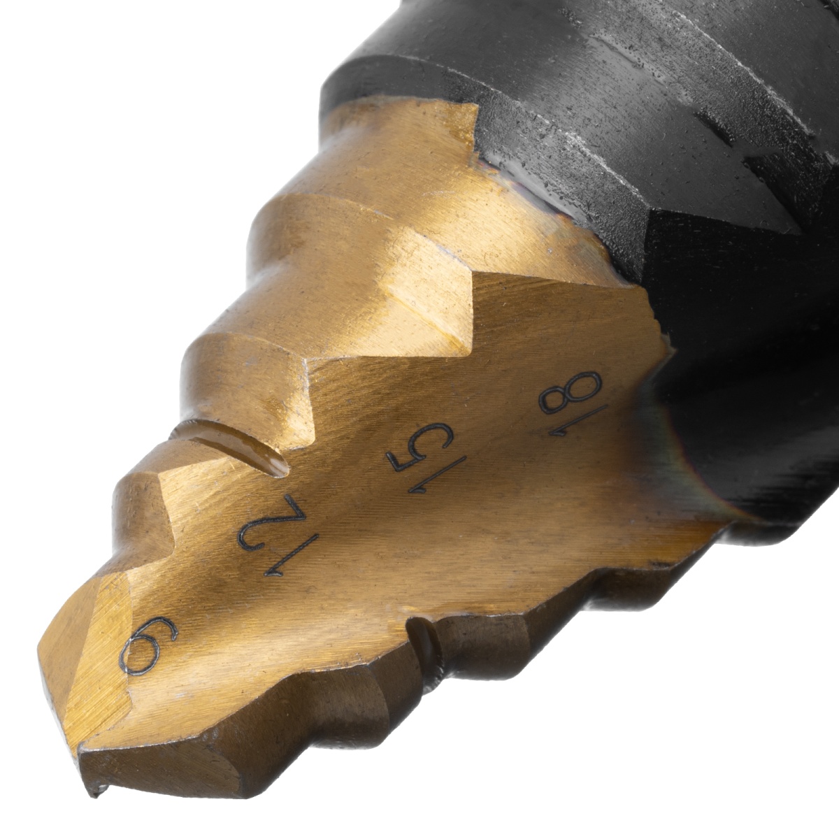 Купить Сверло ступенчатое, 9-12-15-18-21-24-27-30-33-36 мм, Р6М5, 6-гр. хвостовик Denzel V6528 по лучшей цене с доставкой - интернет магазин №1 в России
