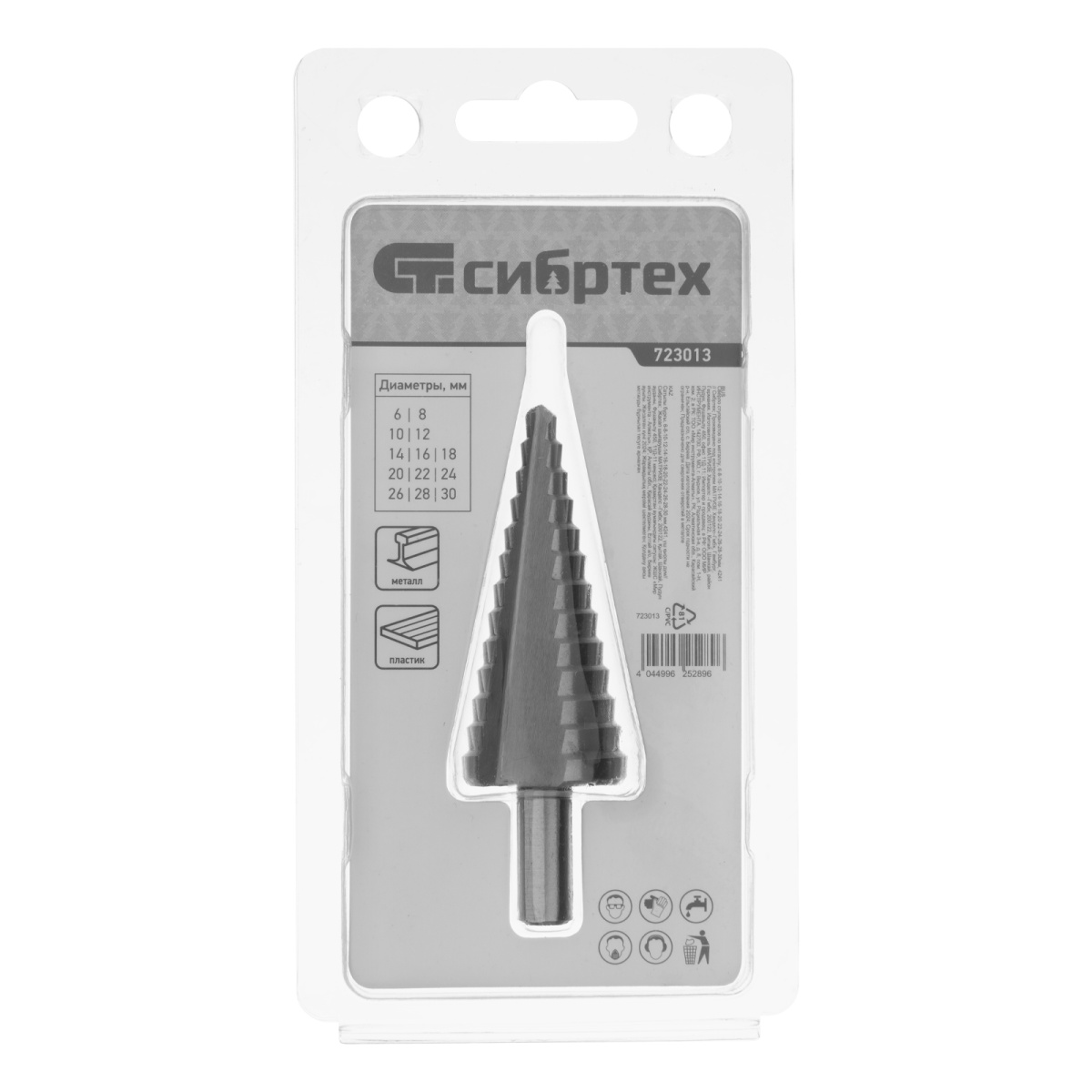 Купить Сверло ступенчатое по металлу, 6-8-10-12-14-16-18-20-22-24-26-28-30мм, 4241 Сибртех V6519 по лучшей цене с доставкой - интернет магазин №1 в России