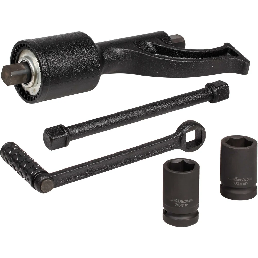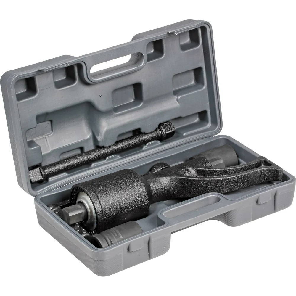 Комплектация Гайковёрт - 1 шт; Рукоятка - 1 шт; Удлинитель - 1 шт; Головка торцевая 32, 33 мм - 2 шт; Кейс пластиковый - 1 шт