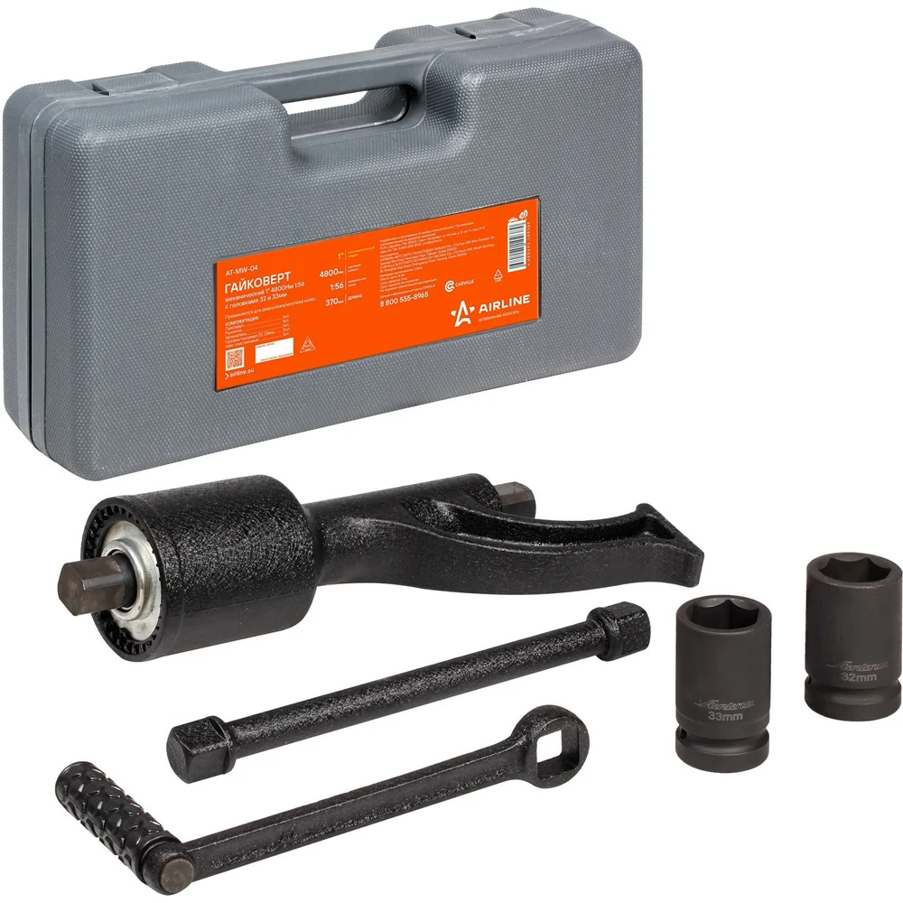 Купить Механический гайковерт AIRLINE 1" 4800 Нм, 1:56, с головками 32 и 33 мм, пластиковый кейс AT-MW-04 по лучшей цене с доставкой - интернет магазин №1 в России