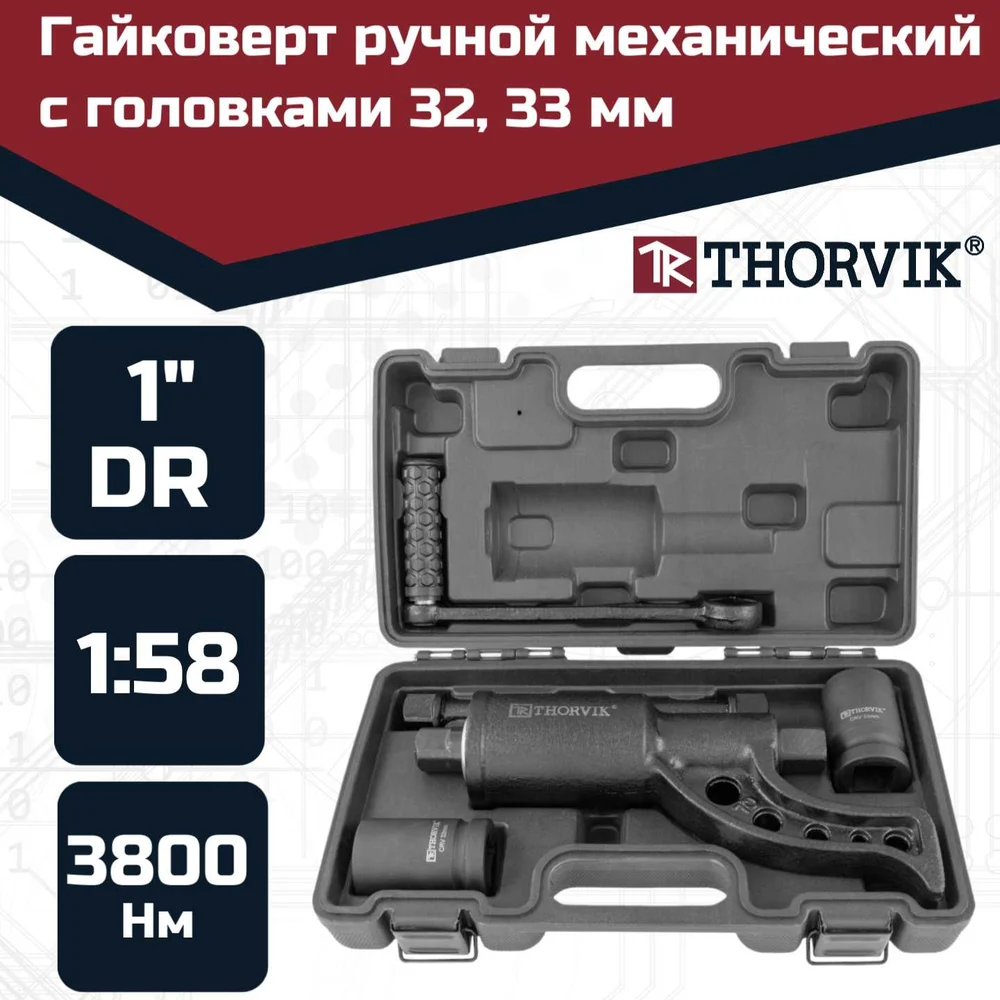 Купить Ручной механический гайковерт 1"DR, 3800 Нм и головки торцевые 1"DR 32 мм, 33 мм Thorvik LSW2 52753 052753 по лучшей цене с доставкой - интернет магазин №1 в России