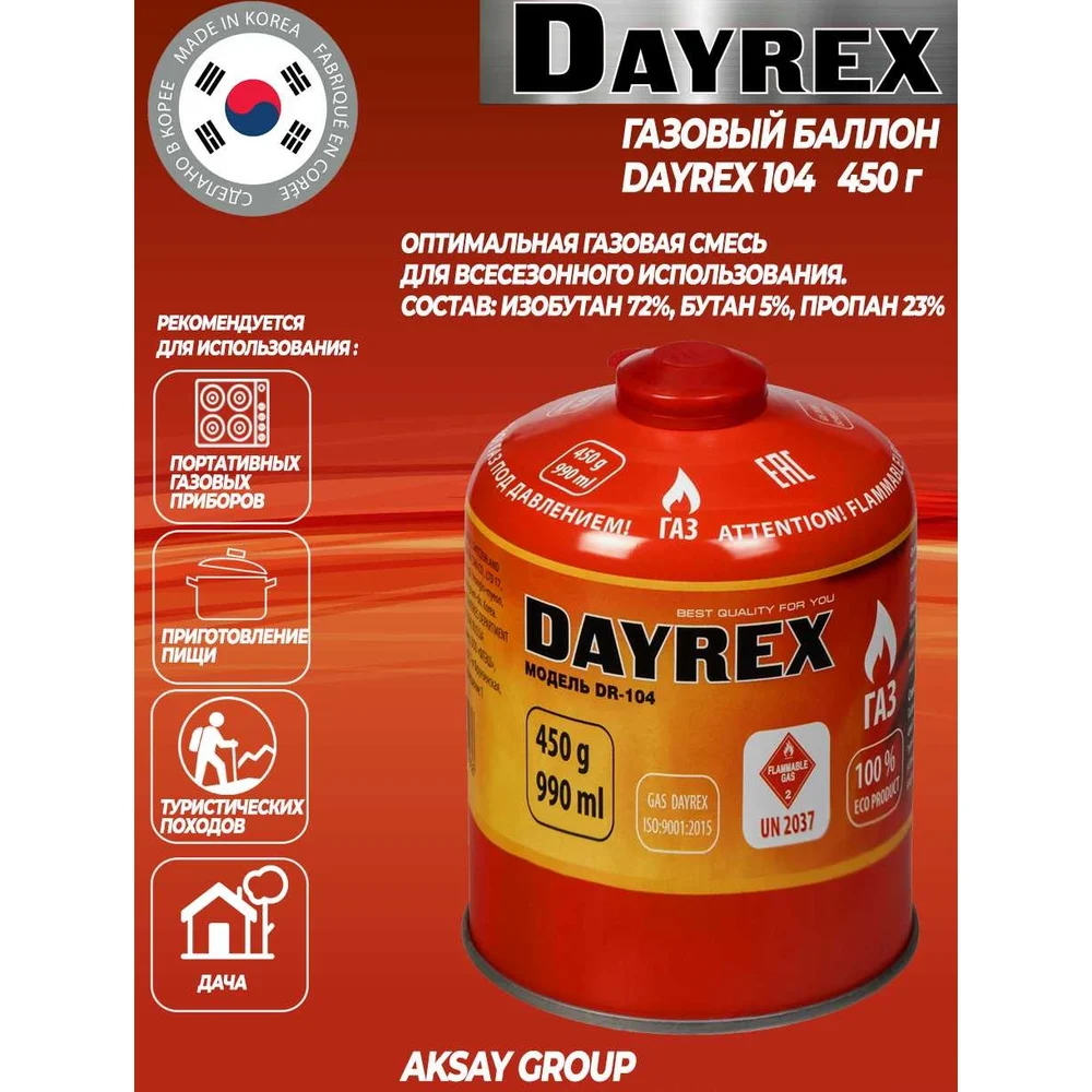 Купить Газовый баллон DAYREX 104 450 г 629936 по лучшей цене с доставкой - интернет магазин №1 в России